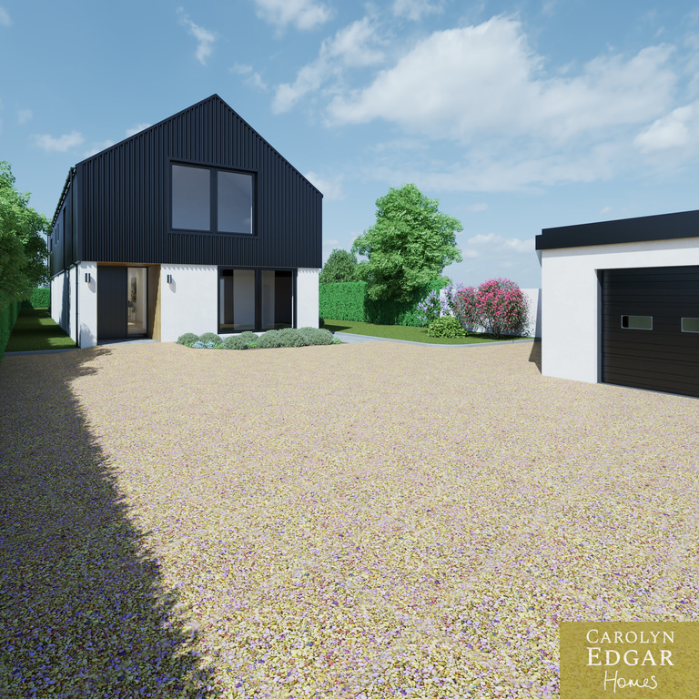 Designed to the highest standard throughout, this striking home combines modern architectural style with spacious, thoughtfully planned accommodation, combining stylish interiors and well-designed outdoor areas creating a blend of comfort, functionality and modern design. The exterior showcases a contemporary finish, with dark grey corrugated cladding to the upper walls and roofline, complemented by crisp white rendered lower walls, the rear sun terrace with composite decking is perfect for relaxing and enjoying the surrounding views. The detached double garage is designed to match the main house, with dark grey doors and windows to complement the cladding. The property is accessed via a gated entrance, adding extra privacy.