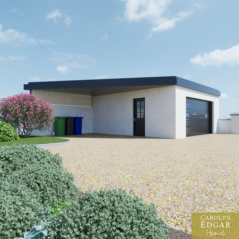 Externally, the property will benefit from landscaped gardens, a spacious parking and turning area, a double garage, and a built-in bin and recycling storage area.