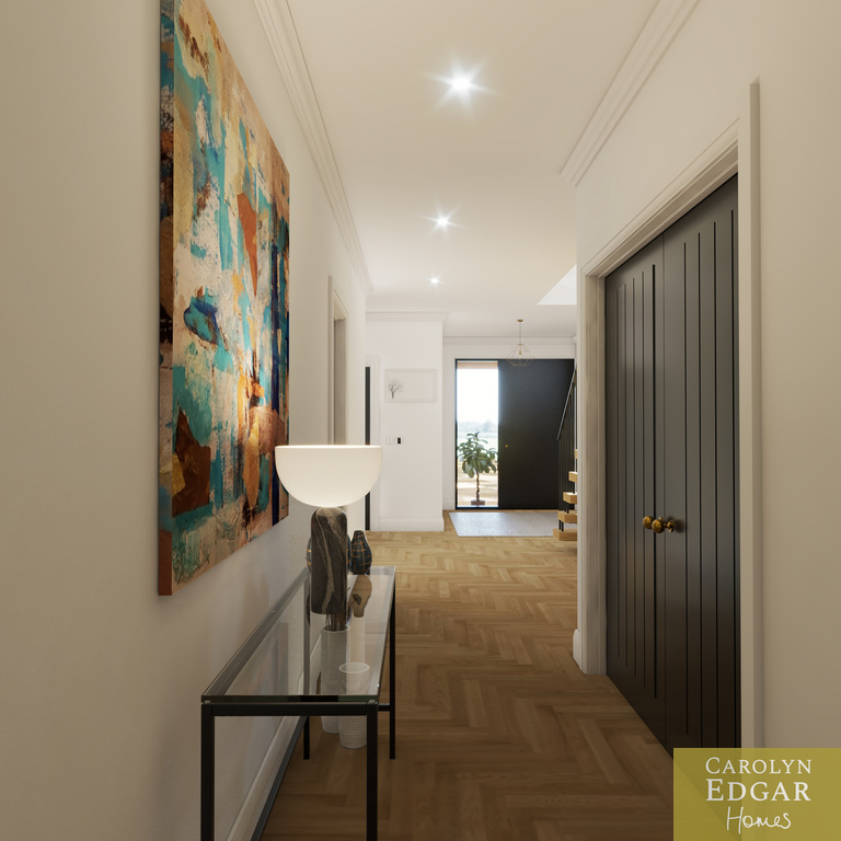 Internally, the accommodation is split over two levels with on ground level, spacious and bright entrance hallway with recessed covered porch, four generous double bedrooms, including a superb principal suite with ensuite shower room and separate dressing room. A modern family bathroom serves the remaining bedrooms, and practical boot room and cloakroom provide excellent additional storage and convenience.