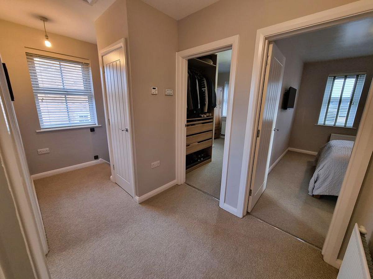 Built-in storage cupboard, access to roofspace with slingsby type ladder, radiator.