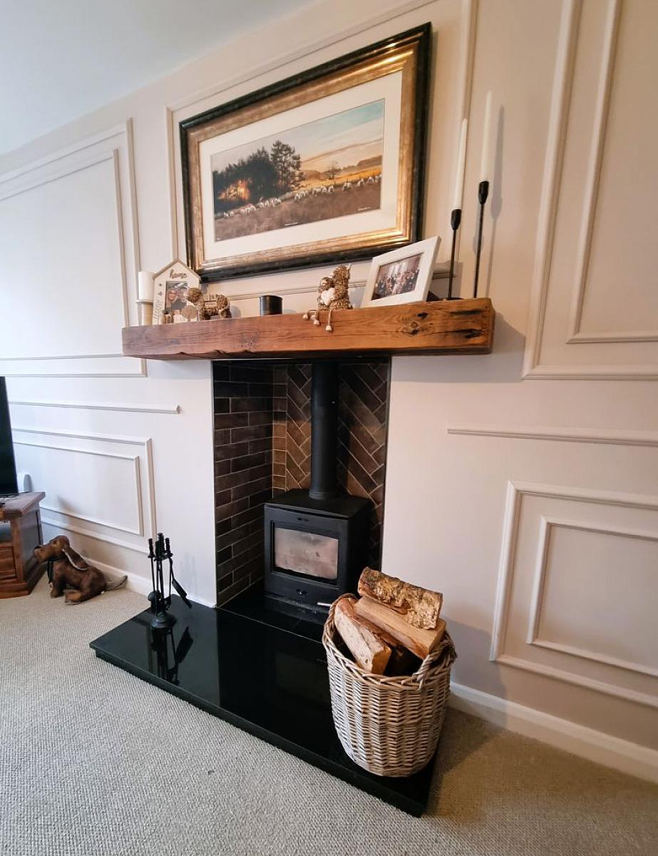 Feature wood panelling with wood burning stove and tiled inset, granite hearth, double radiator.