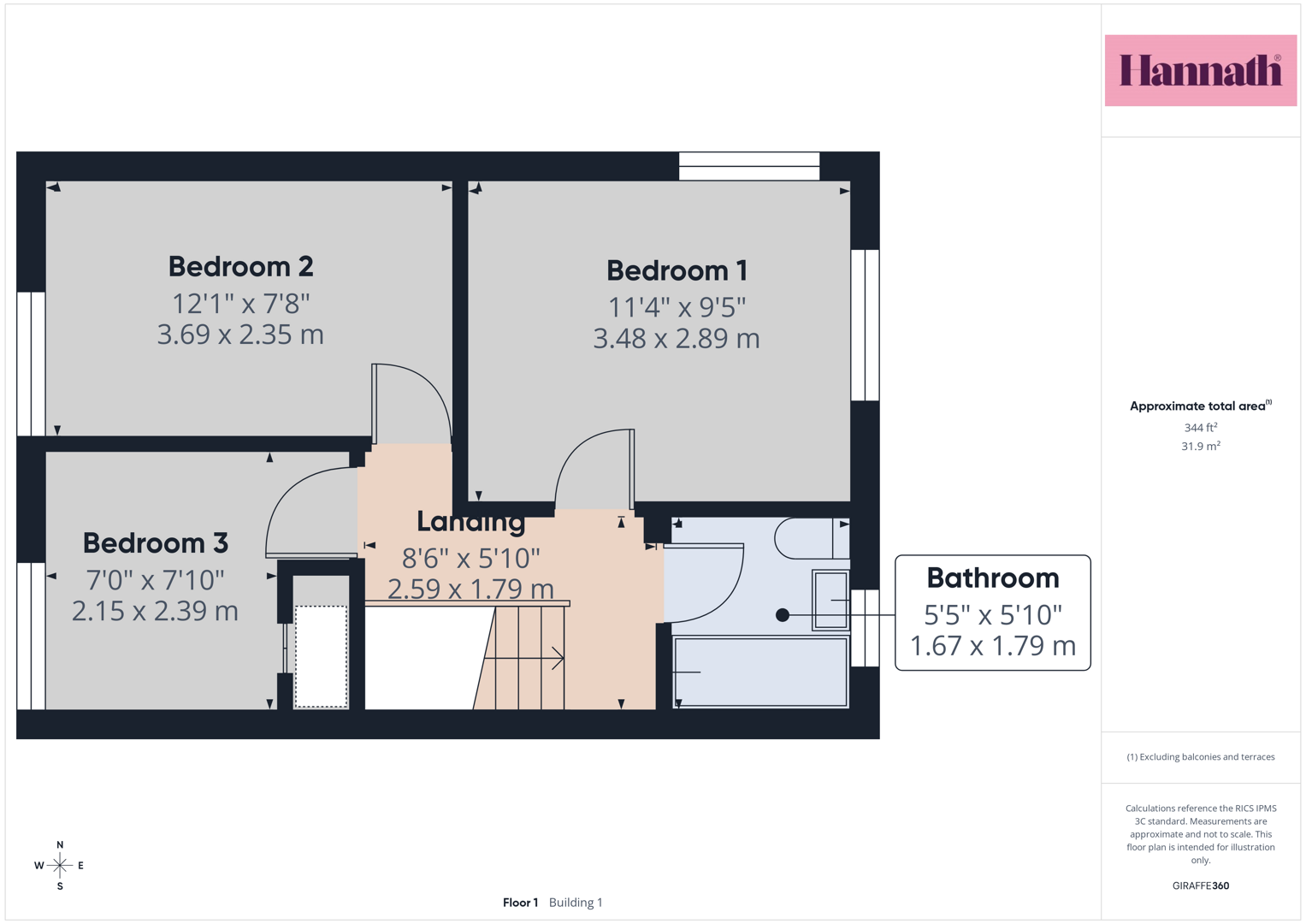 Landing 8'6 X 5'10 (2.59m X 1.78m)