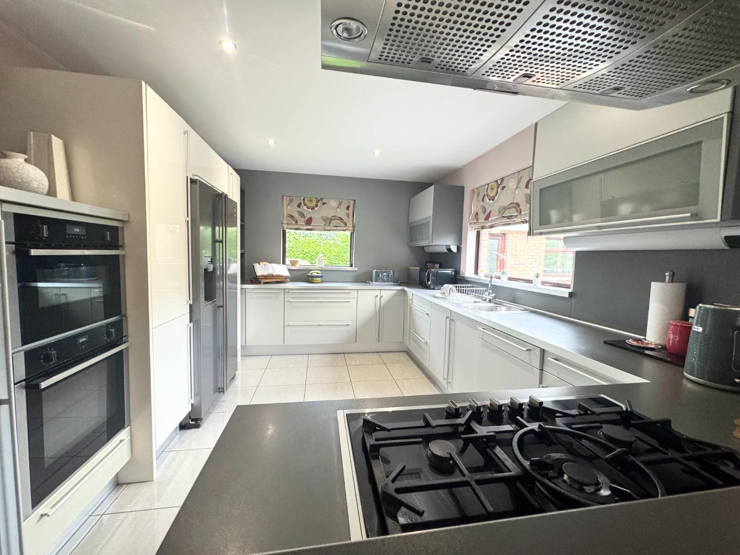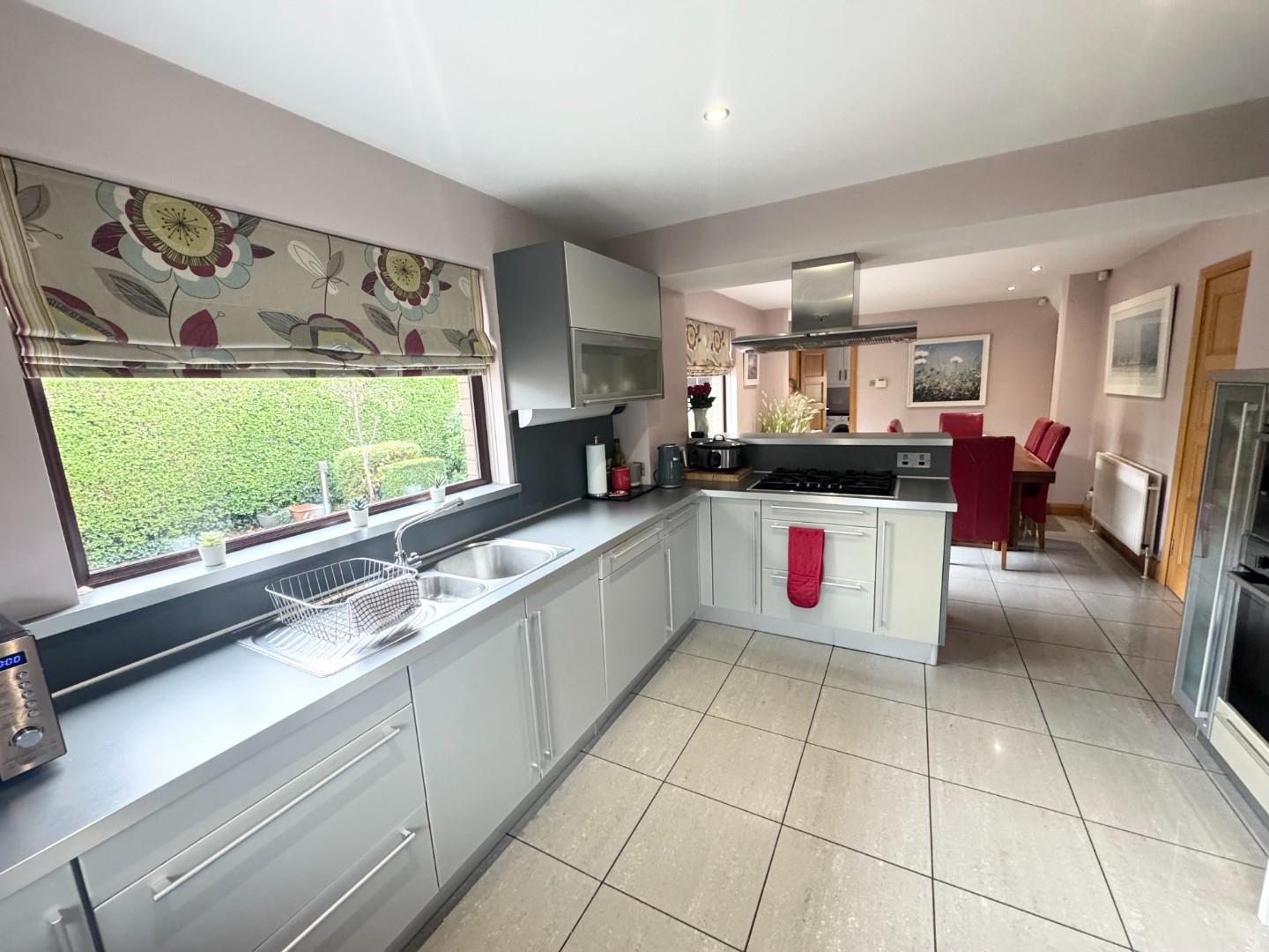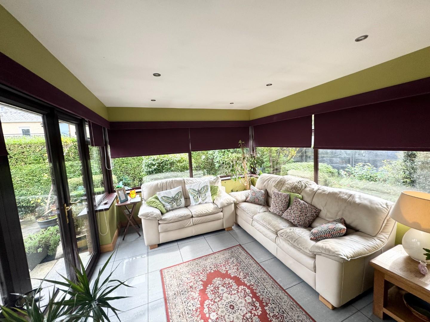 This great bright spacious room ideal for socializing, has a modern kitchen with high and low level units, 11/2 stainless steel sink and drainer, integrated gas 5 ring hob with stainless steel extractor above, double electric ovens, plumbed for American fridge freezer, integrated dishwasher, breakfast bar area and large dining area , fully tiled floor, recessed lights, flows to sun room.