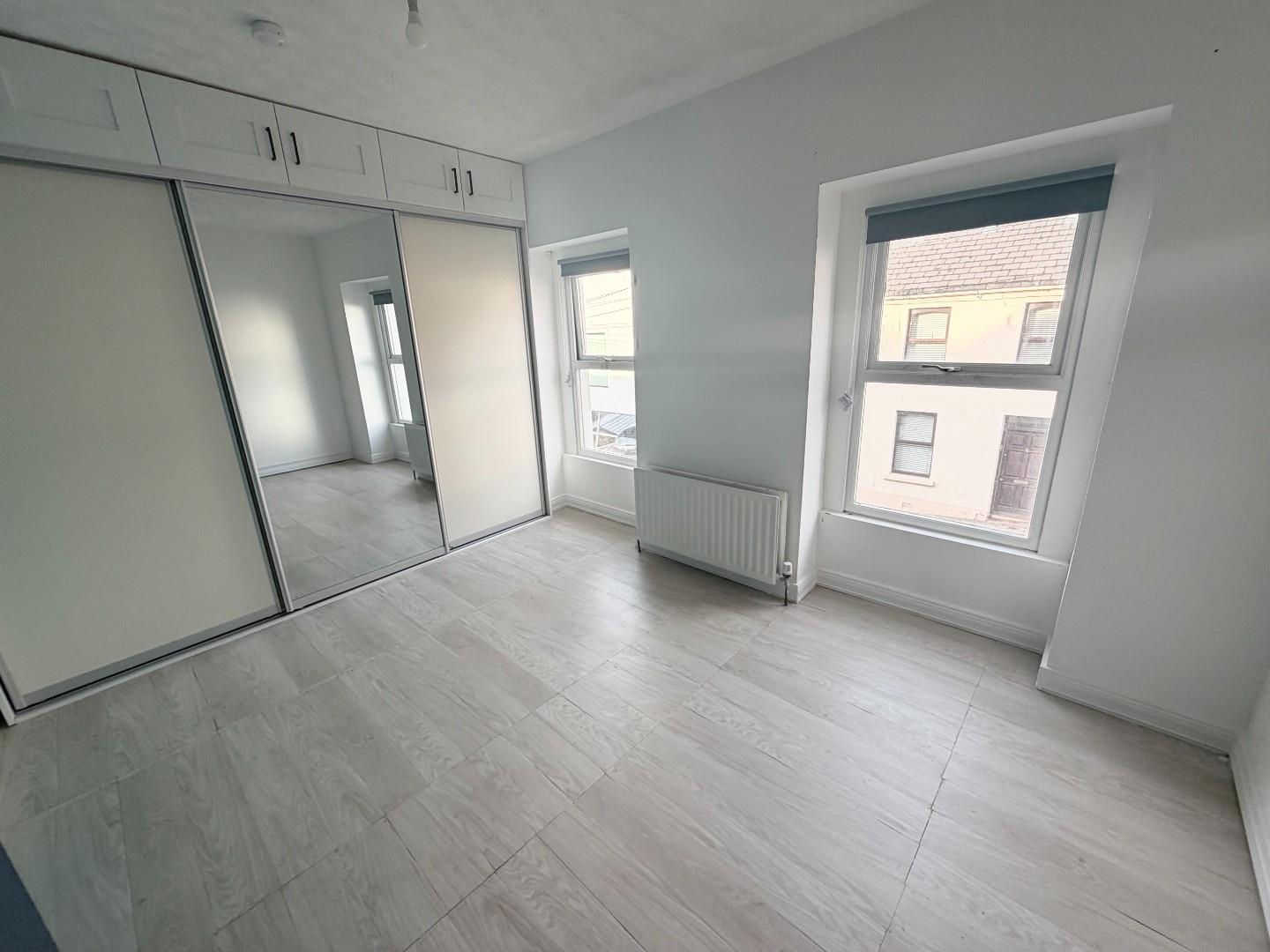 Double room with laminate flooring and built in mirror robe.
