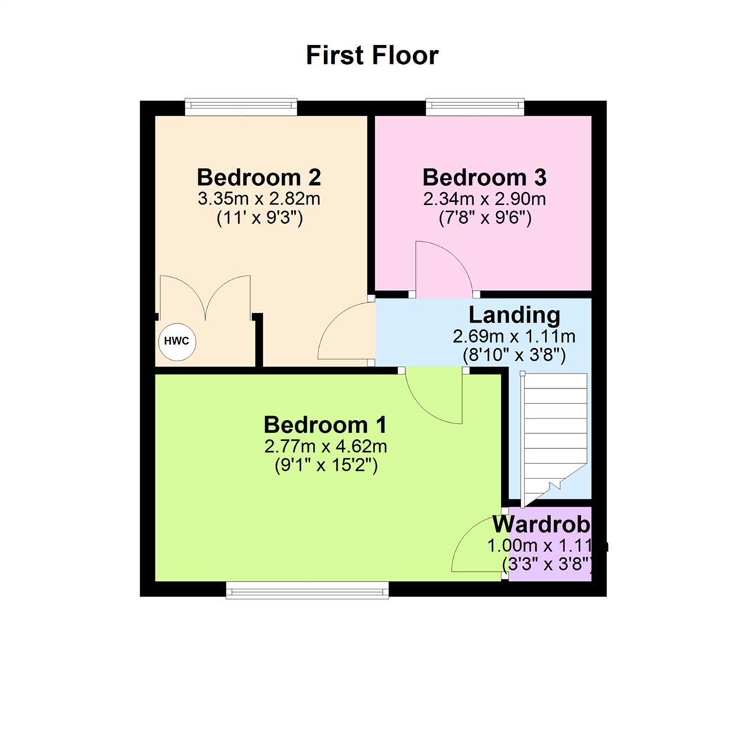 Bedroom 1 9'1" X 15'2" (2.77m X 4.62m)