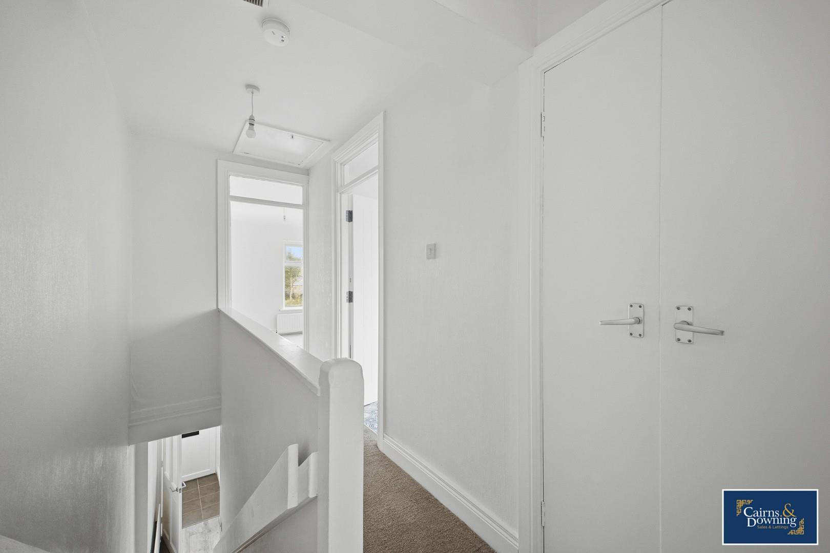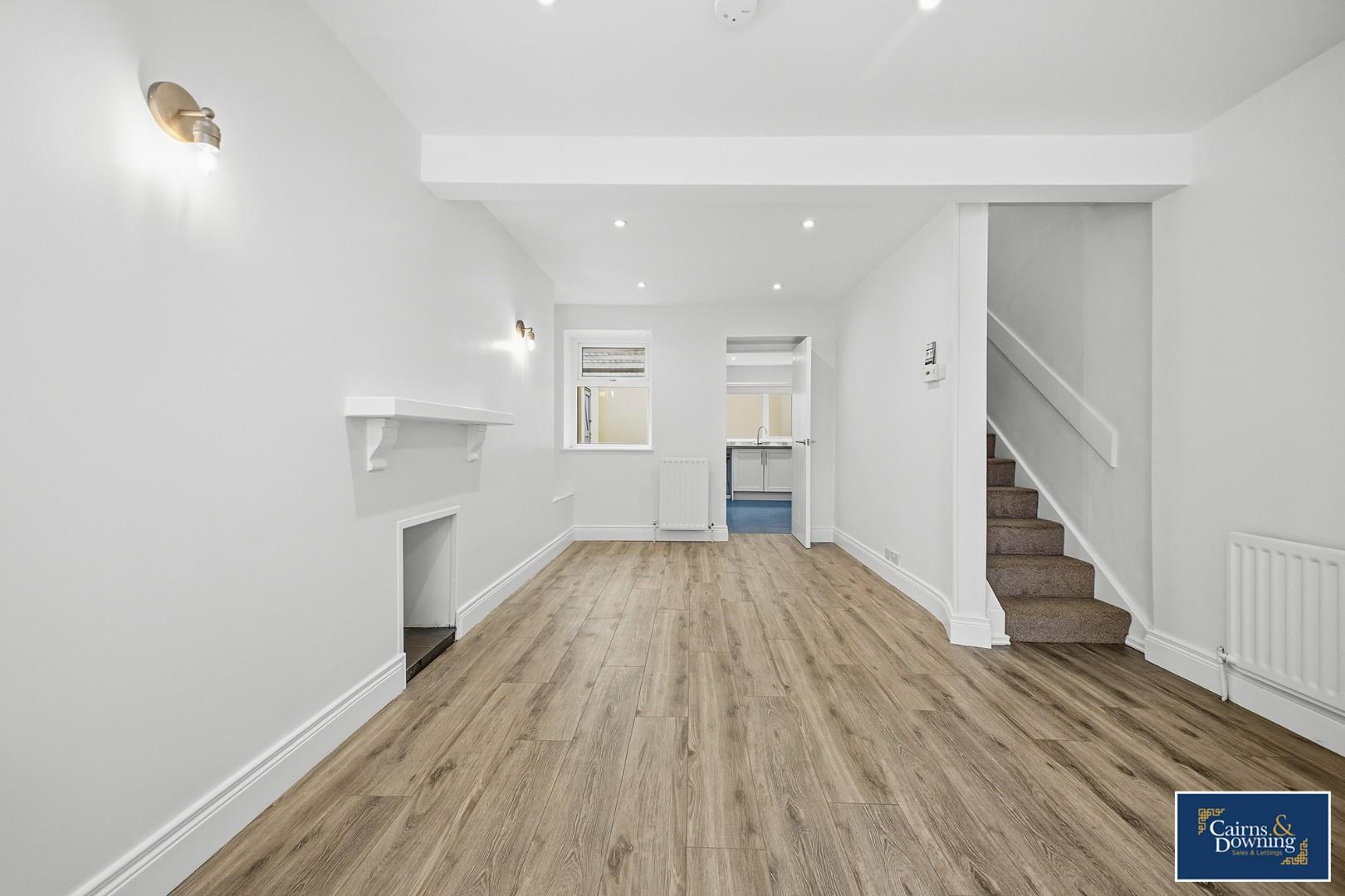 Window to front, window to rear, fireplace, stairs