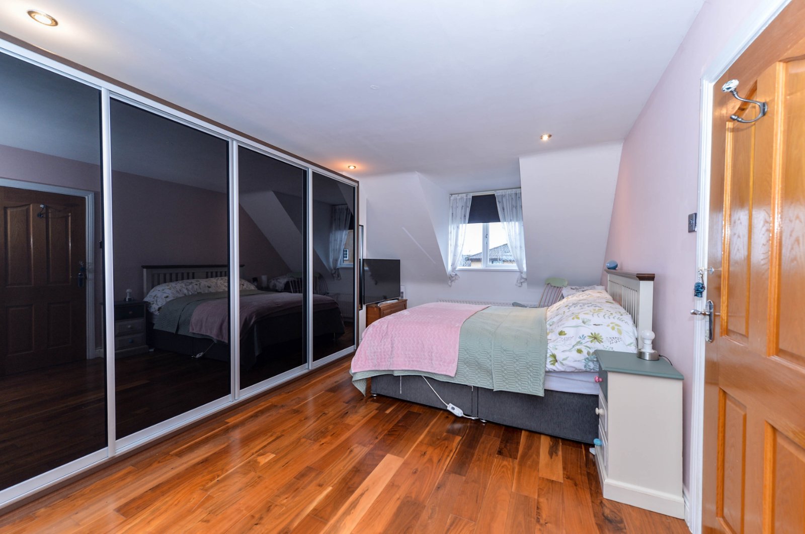 Excellent range of built in robes with sliding doors, solid wooden floor, velux window, recessed spotlights.