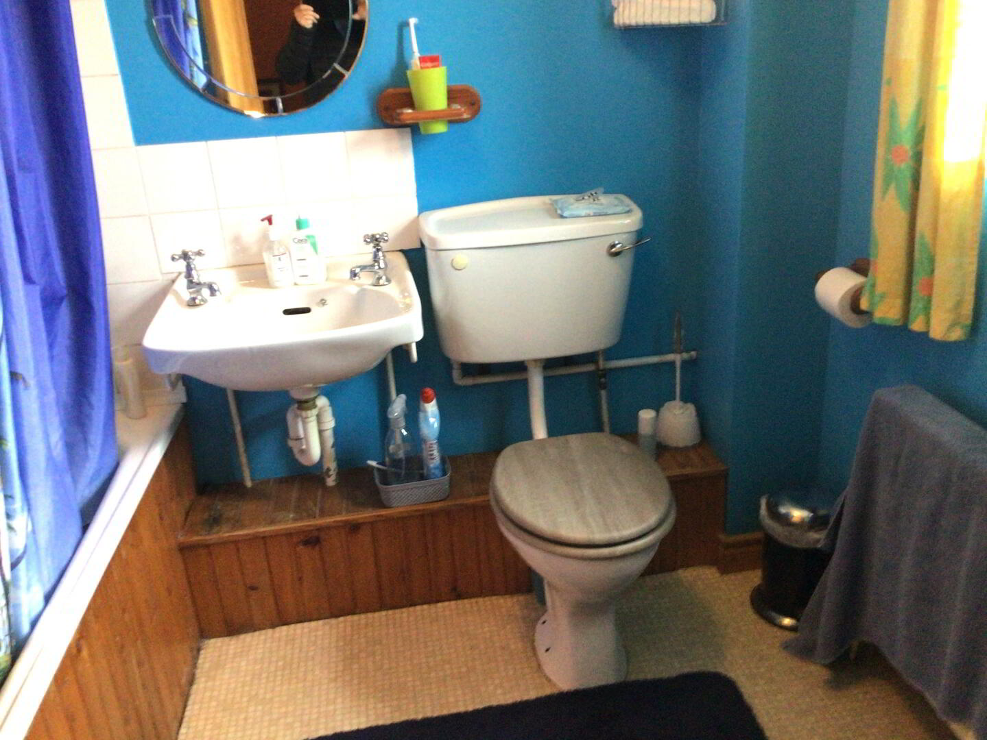 Bathroom 8'3" x 6'6". Wall mounted Wash Hand Basin, Low Flush WC, Panelled Bath.