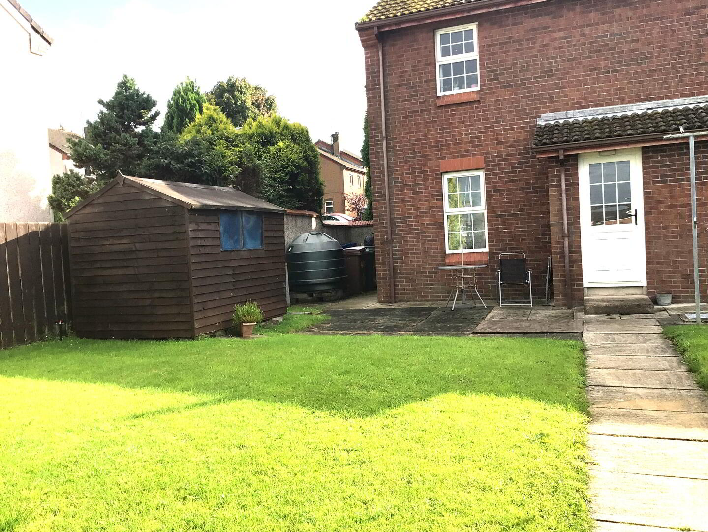 OUTSIDE: Small garden area to front with on site parking. Spacious garden to rear with patio area garden shed.