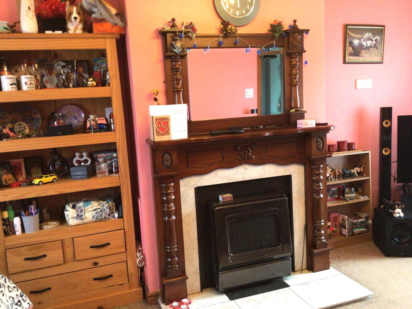 Living Room: 17'8" x 11'6" Open Fireplace with wooden surround, marble inset and marble hearth.