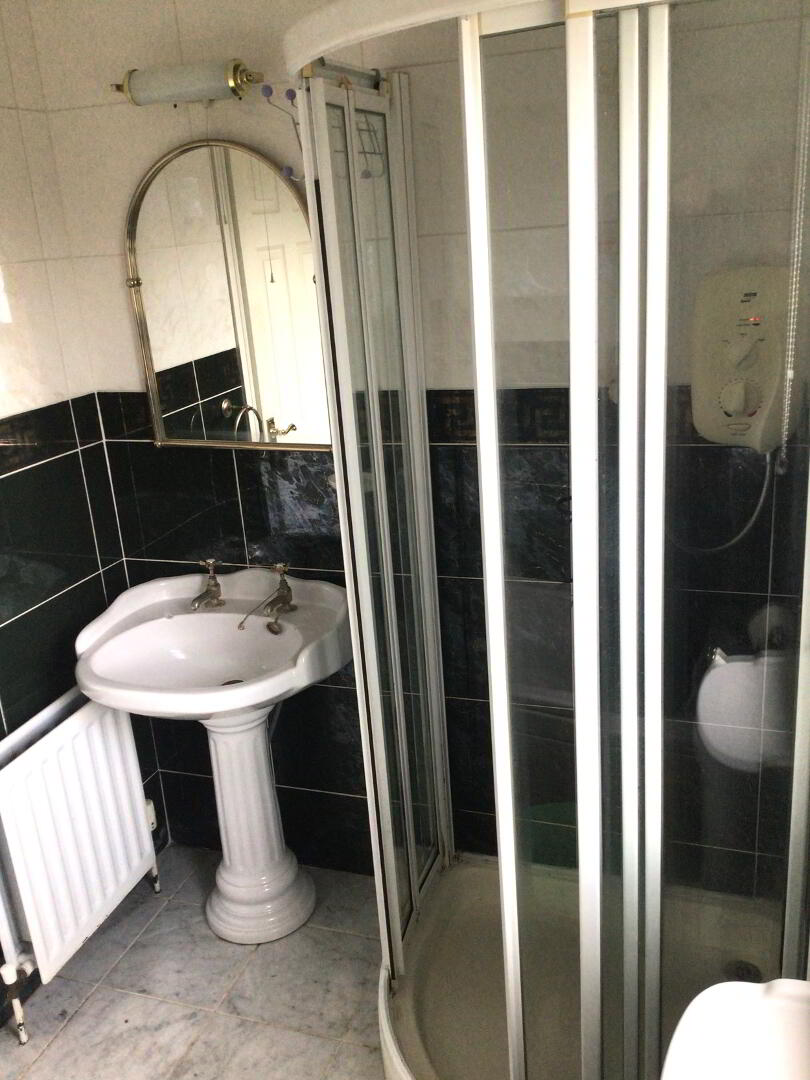 White Suite comprising, Close Coupled WC, Panelled Bath and Pedestal Wash Hand Basin. Separate Fully Tiled Shower Unit with Mira Electric Shower. Fully Tiled Walls. Fully Tiled Floor. Single Panel Radiator.