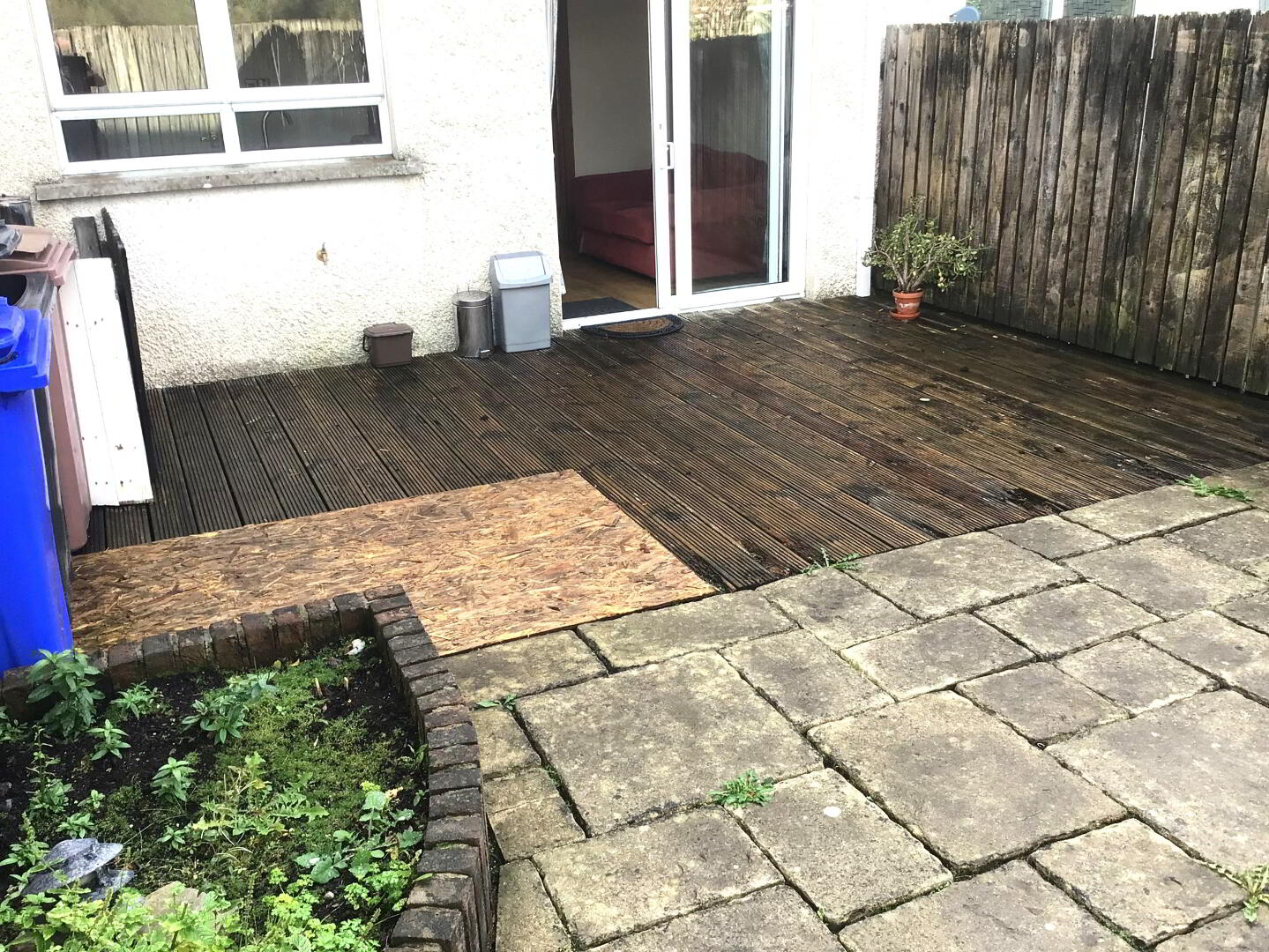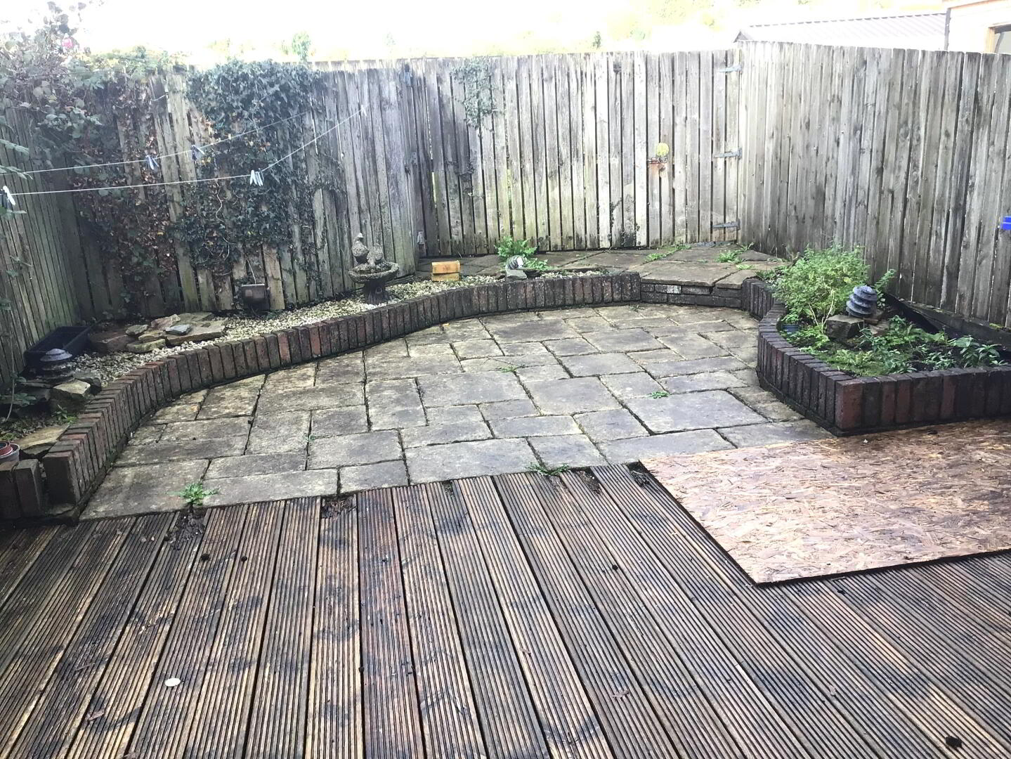Enclosed area to rear with decking and patio area plus raised floor beds. Off street parking to front.