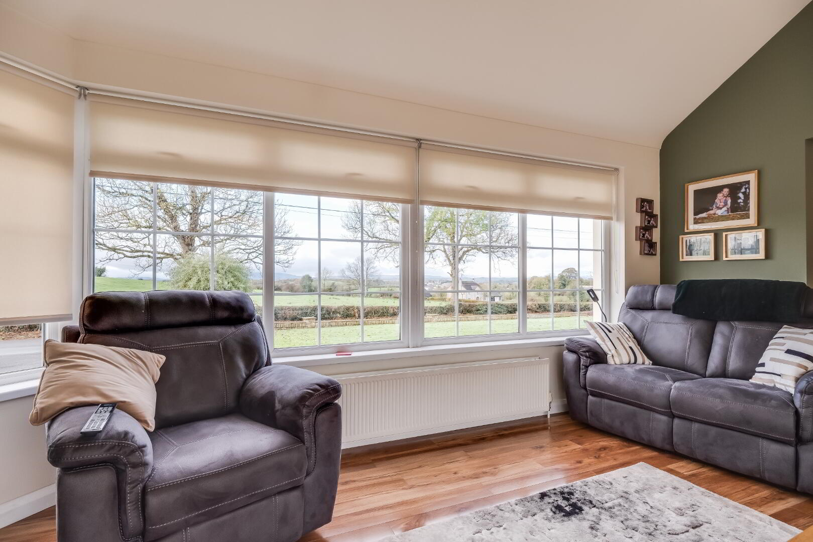 Open hearth with solid fuel stove, mantle, tiled hearth, high ceiling, laminate flooring, views towards Enniskillen and Belmore Mountain, double doors to Dining Area with glazed inset..