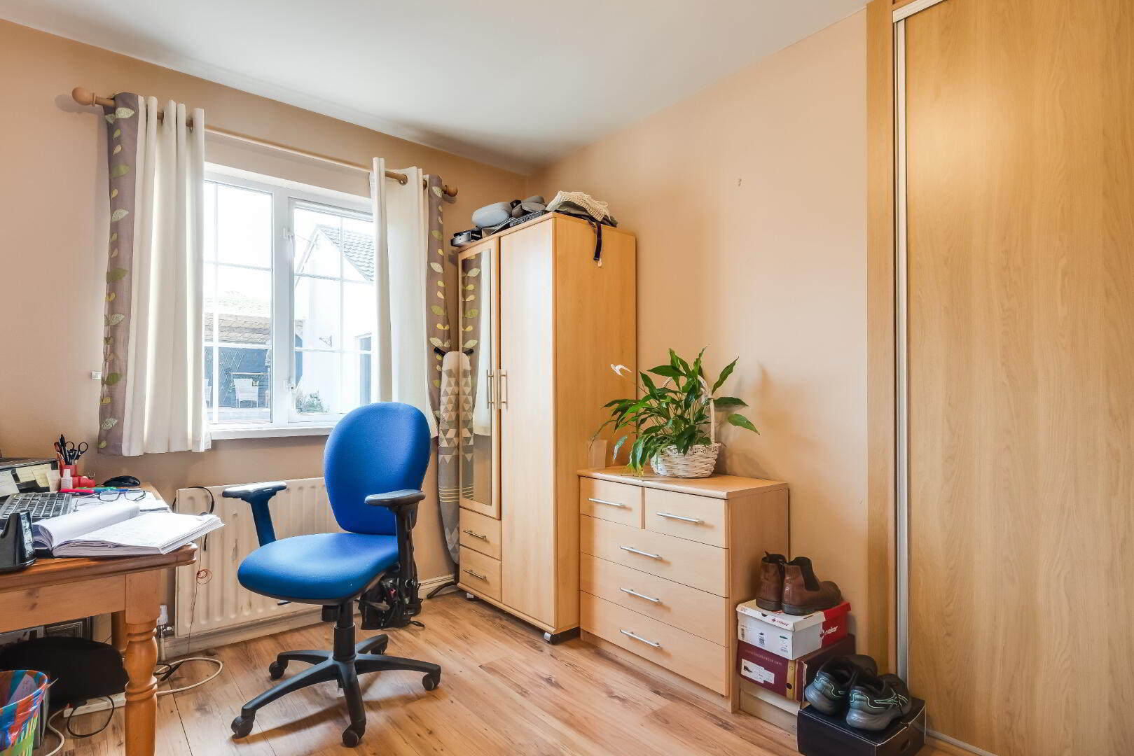 Floor to ceiling fitted slide robes with mirrored door, fitted dressing table & bedside furniture, laminate flooring..
