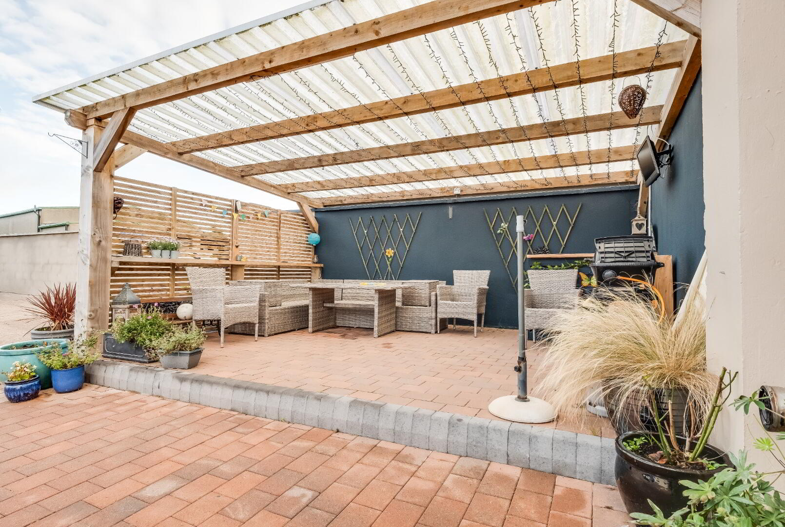 The property is set within beautifully matured grounds that perfectly complement its charming country setting. To the front, an attractively landscaped garden creates a welcoming approach, framed by well-tended lawns and established planting that provide colour and character throughout the seasons. To the rear, an extensive parking area offers excellent space for vehicles, further enhanced by a substantial garage providing additional storage and practical convenience. A feature raised and covered patio area completes the outdoor, offering an ideal space for entertaining, dining, or simply relaxing while enjoying the tranquil surroundings.