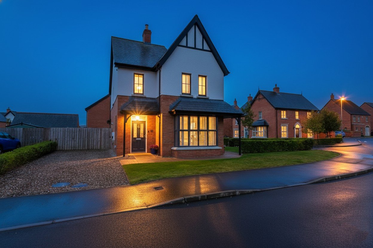 Modern detached family home situated in a highly desirable location on an excellent corner site. This stunning four bedroom property offers contemporary living in one of the area's most sought-after neighbourhoods. Finished to a high modern standard throughout, it combines style, comfort and practicality. The well planned interior offers a lounge with multi burning stove, deluxe open plan fitted kitchen through to dining area and sun lounge, utility room, ground floor wc, four well proportioned bedrooms - master bedroom with en-suite and a modern family bathroom. Built with modern insulation, a gas fired central heating system and double glazed windows. This property is ideal for those looking for a move-in-ready home in a safe, family-friendly area. Early viewing is highly recommended to appreciate all this fine home has to offer.