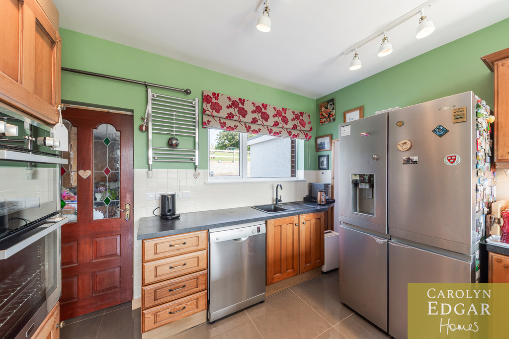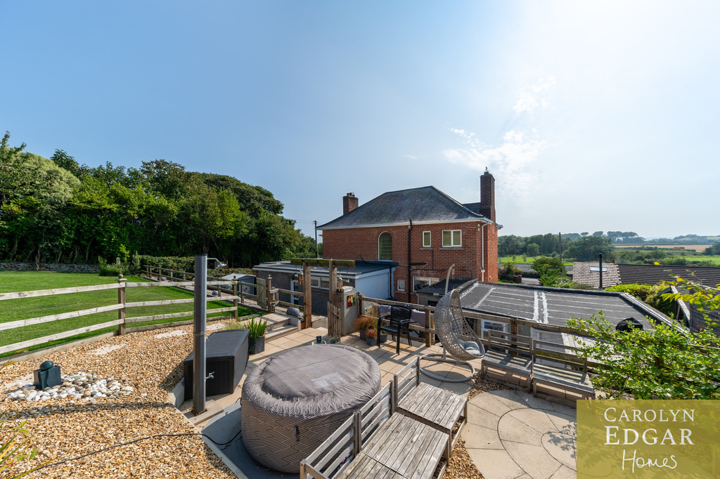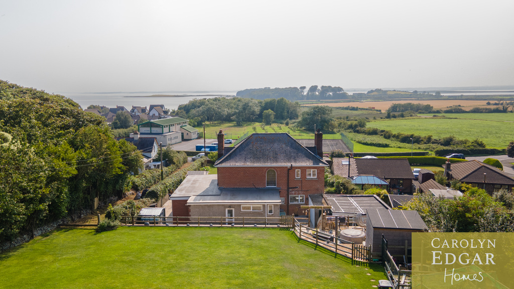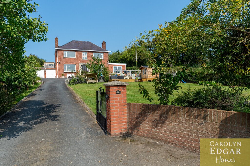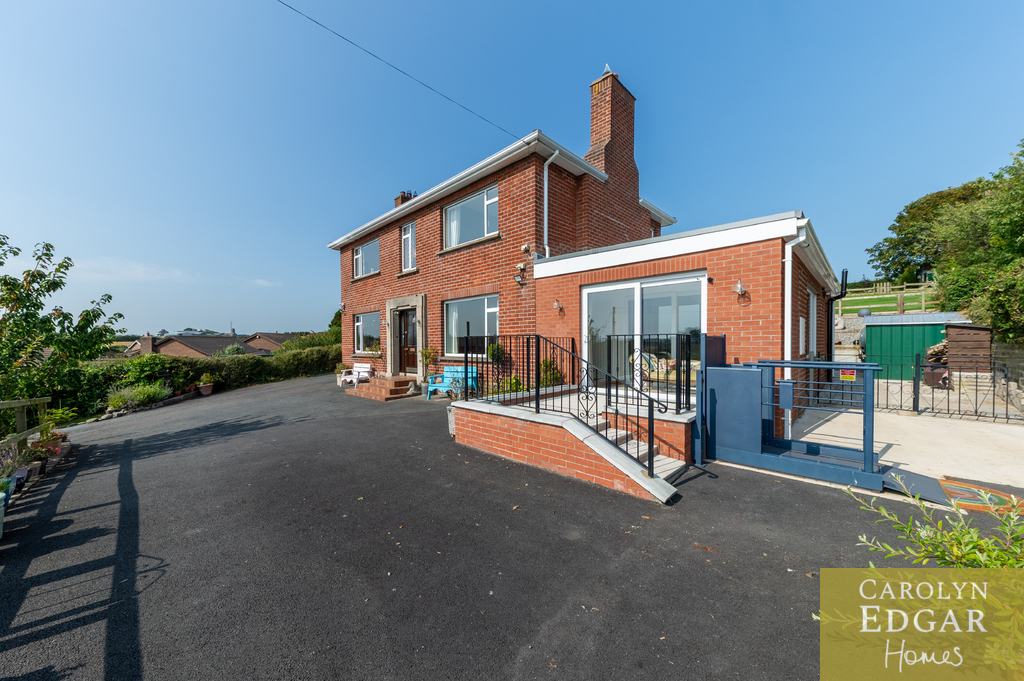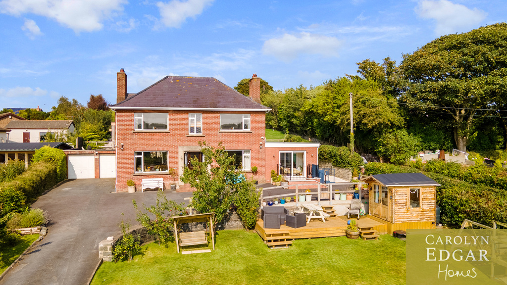 This iconic double-fronted red brick detached home is nestled on a prime half-acre site, with delightful well-maintained gardens to the front and rear offering delightful views of the surrounding area and Lough from its fabulous, elevated sun terrace at the rear. Built in 1947, formerly the local GP practice and house this residence has been thoughtfully renovated by the current owner with many modern improvements behind the scenes including rewiring, new heating system and cavity wall insulation but preserving many original features such as parquet flooring, wood panelled walls and oak staircase in the hallway and tiled fireplace in both the lounge and dining room. The property also boasts a modern extension, perfect for those seeking additional space, as well as a downstairs bedroom and shower room, making it an ideal choice for families or individuals with mobility considerations. Set in a most sought after location with great views over the Lough this home will have great appeal to those looking for a quieter lifestyle but still within easy reach of many amenities with only a short walk bringing you to the quaint village of Greyabbey with its selection of coffee houses, restaurants, popular antique shops and shoreline but also the bustling town of Newtownards with its wider selection of shops and facilities is only ten minutes' drive away. Interanlly the property comprises of entrance porch, welcoming entrance hall with original parquet flooring, wood panelled walls and solid oak staircase, cozy lounge with original tiled open fireplace, overlooking the perfectly maintained front gardens, leading to the sunroom/porch again with fabulous views over the extensive gardens and surrounding area, leading to reception/ family room, as well as the flexibility of a fifth double bedroom on ground floor, shower room and office. The dining room also overlooks the gardens, the room flooding with plenty of natural light and features original parquet flooring and open fireplace with marble tiles leading into the well-equipped fitted kitchen with an ample range of built in units and appliances and a separate utility room. Upstairs there are four bedrooms three of which are doubles and separate bathroom and WC. Externally the property is set in beautifully maintained wrap around gardens with ample car parking to the front, decked sun terrace, Summerhouse and mature trees and shrubs and to the rear are extensive landscaped gardens complete with your own summer house/pub and tiered terrace a perfect stop to soak in the views with a glass or two! Not finishing just yet the property also includes a paddock, a large garage with storeroom, outside WC and planning permission for two additional detached dwellings with own access laneway at the rear. All this making this the perfect home with a great balance of both great outdoor and indoor living space with the ideal blend of comfort, style, and convenience for family living.