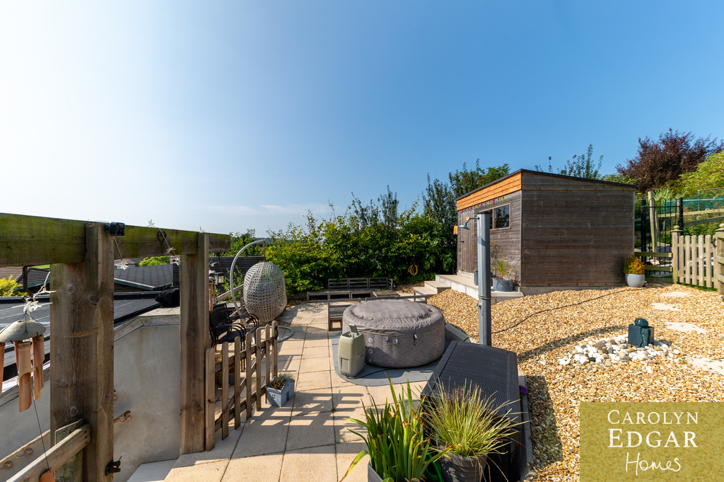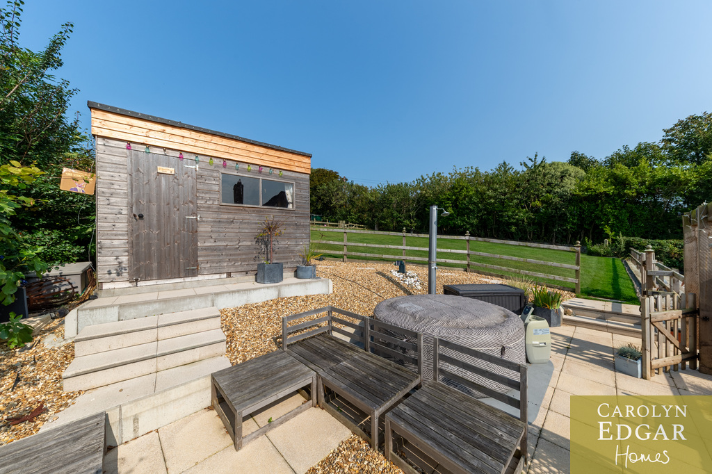 Decked Terrace to Front with Summer House.