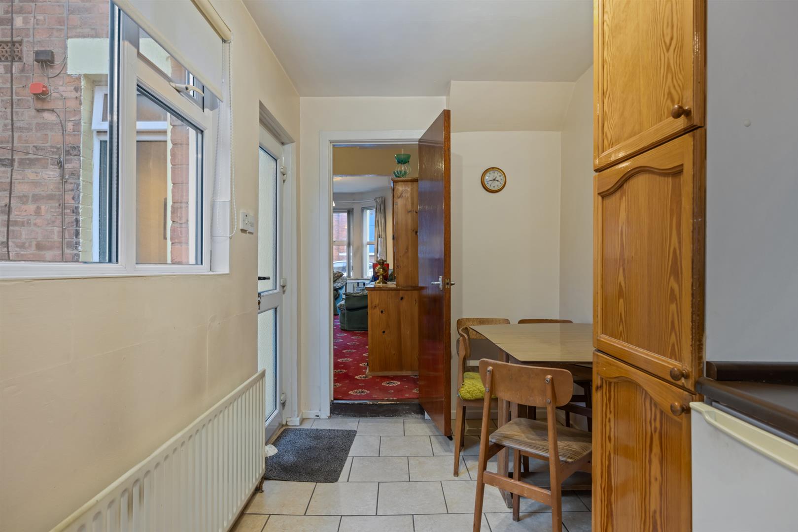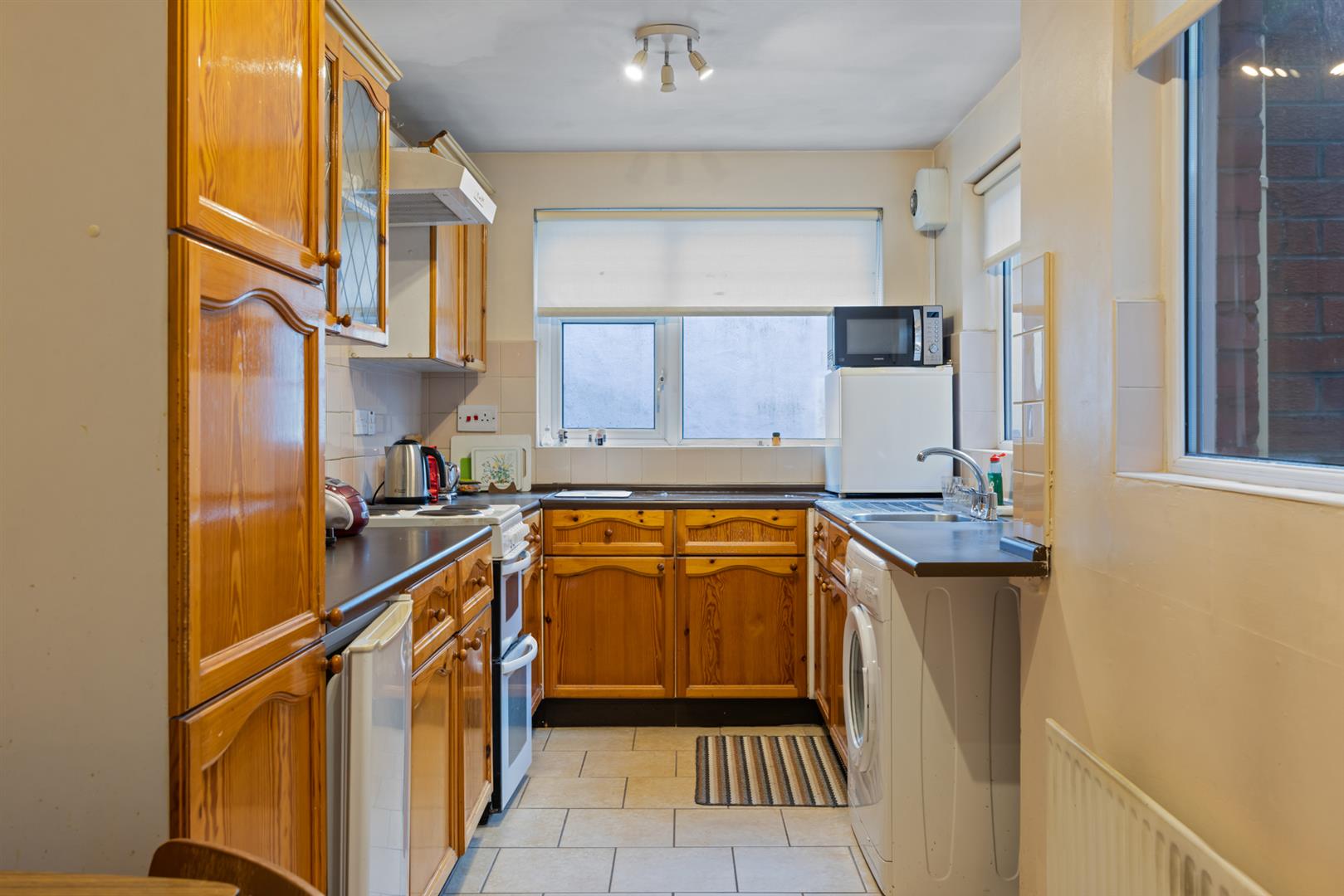 The accommodation is accessed via an entrance hall with original decorative cornicing, leading to a bright, dual-aspect living room featuring a gas fired fireplace with tiled hearth and marble-effect mantle. To the rear, the kitchen is fitted with a range of high and low level units and provides access to the enclosed rear yard.