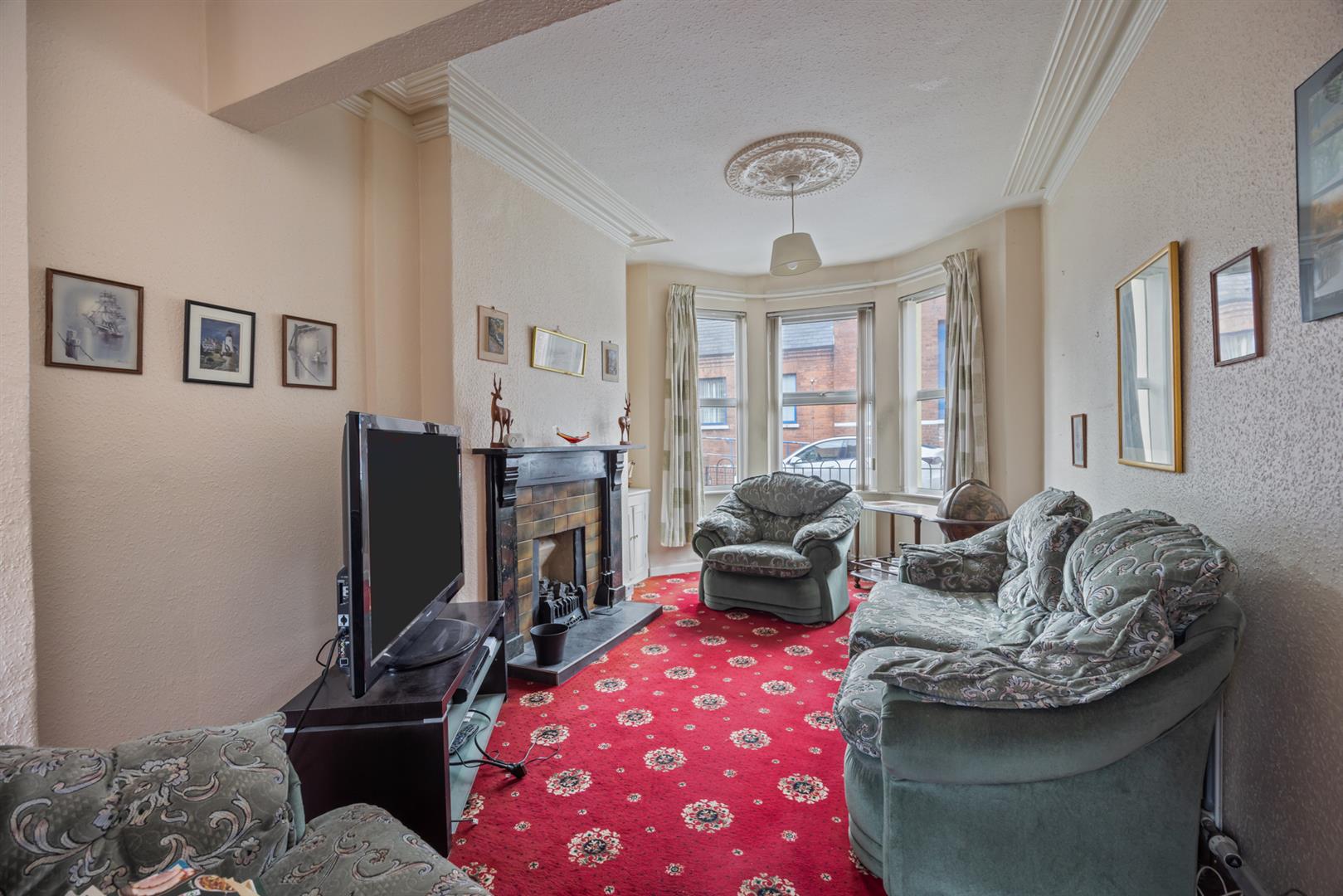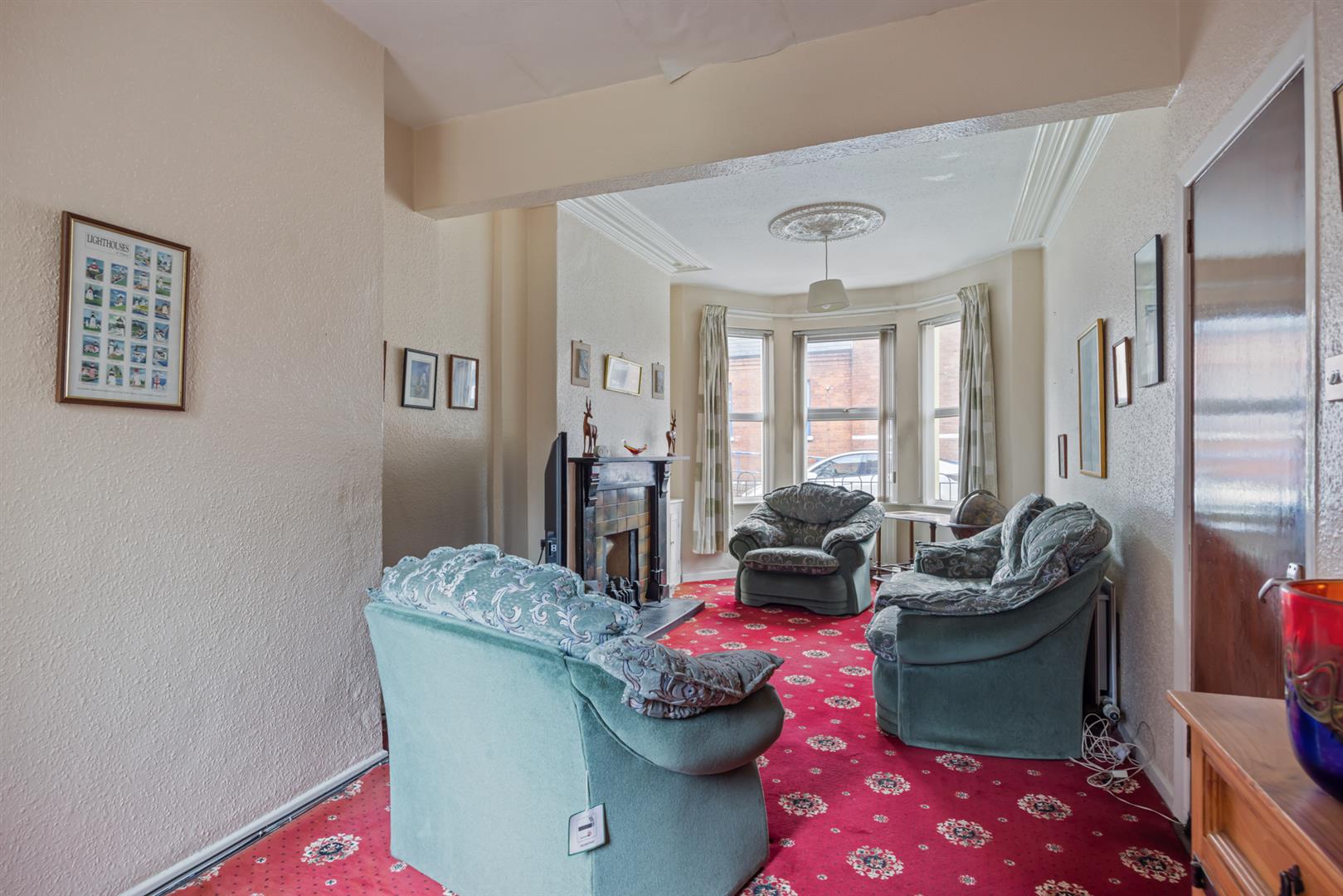 Gas fired with tiled hearth, marble effect mantle, dual aspect, bay window, cornicing to ceiling.
