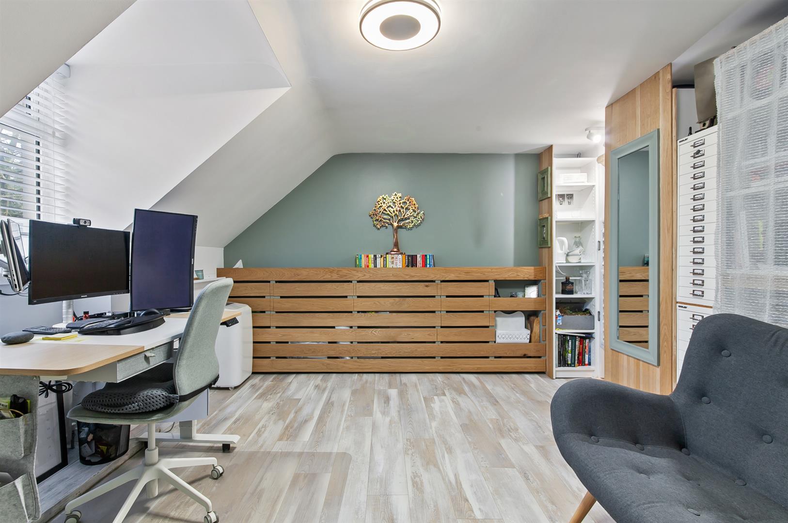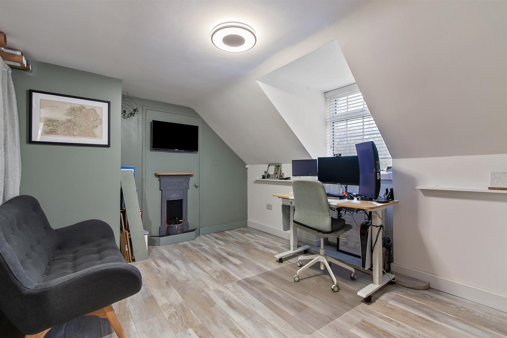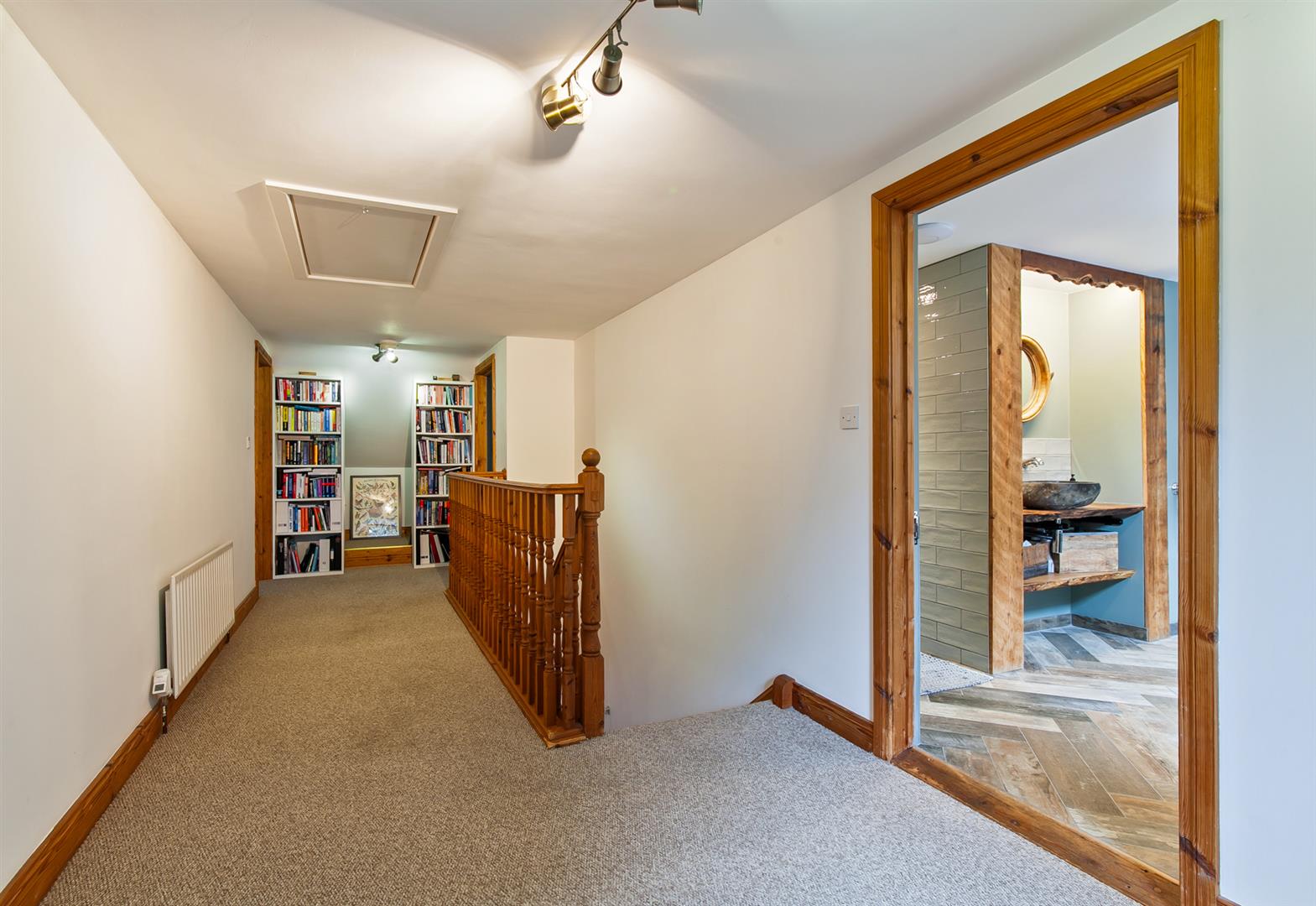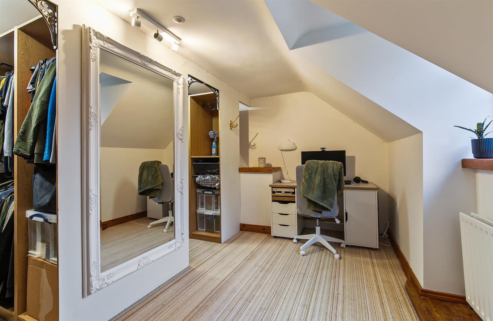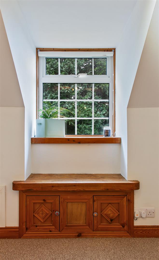 Fitted storage units, timber bench, and built in heated dog bed. Informal study area. Access to partially floored roof space via slingsby style ladder.
