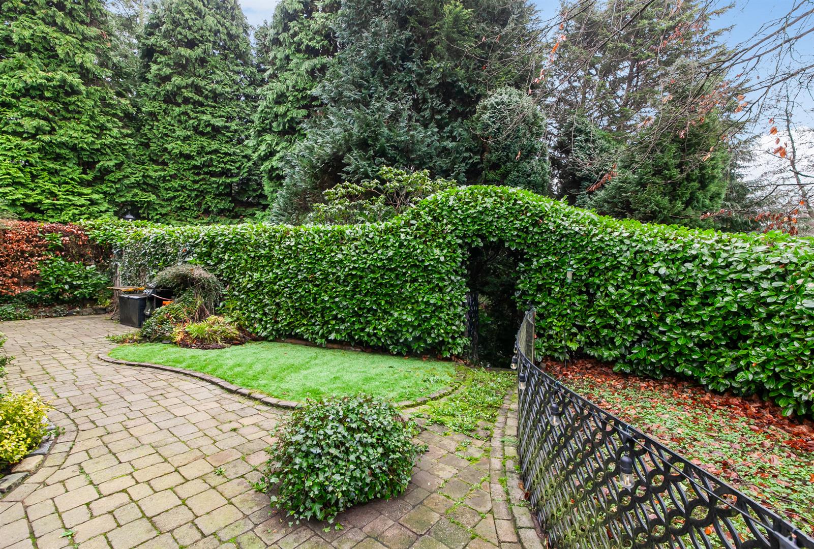 Externally, the property enjoys generous sized private driveway, matching detached garage, and gardens to front, side and rear, finished in lawn, artificial grass, brick pavior patio area, enclosed service area, pond, and range of mature plants, trees and shrubbery.