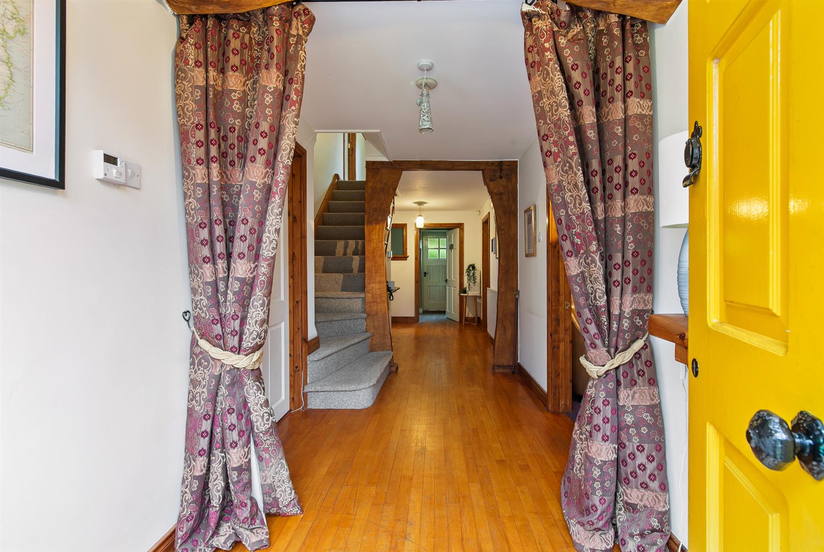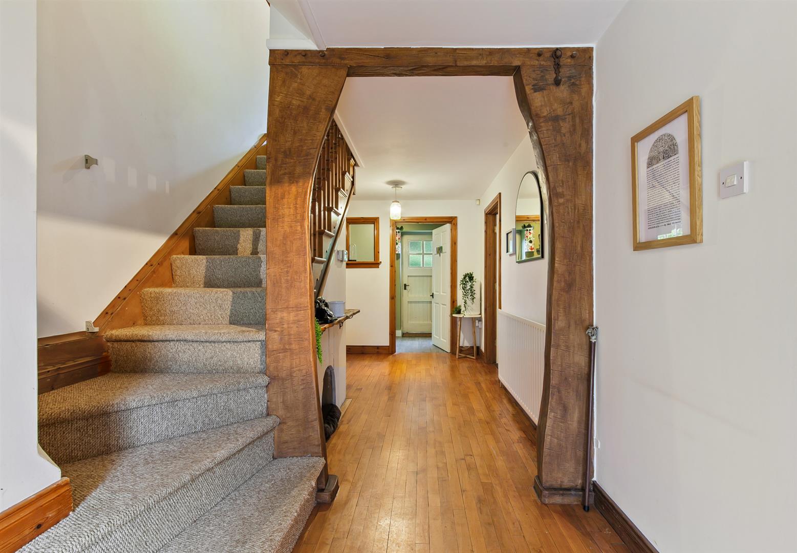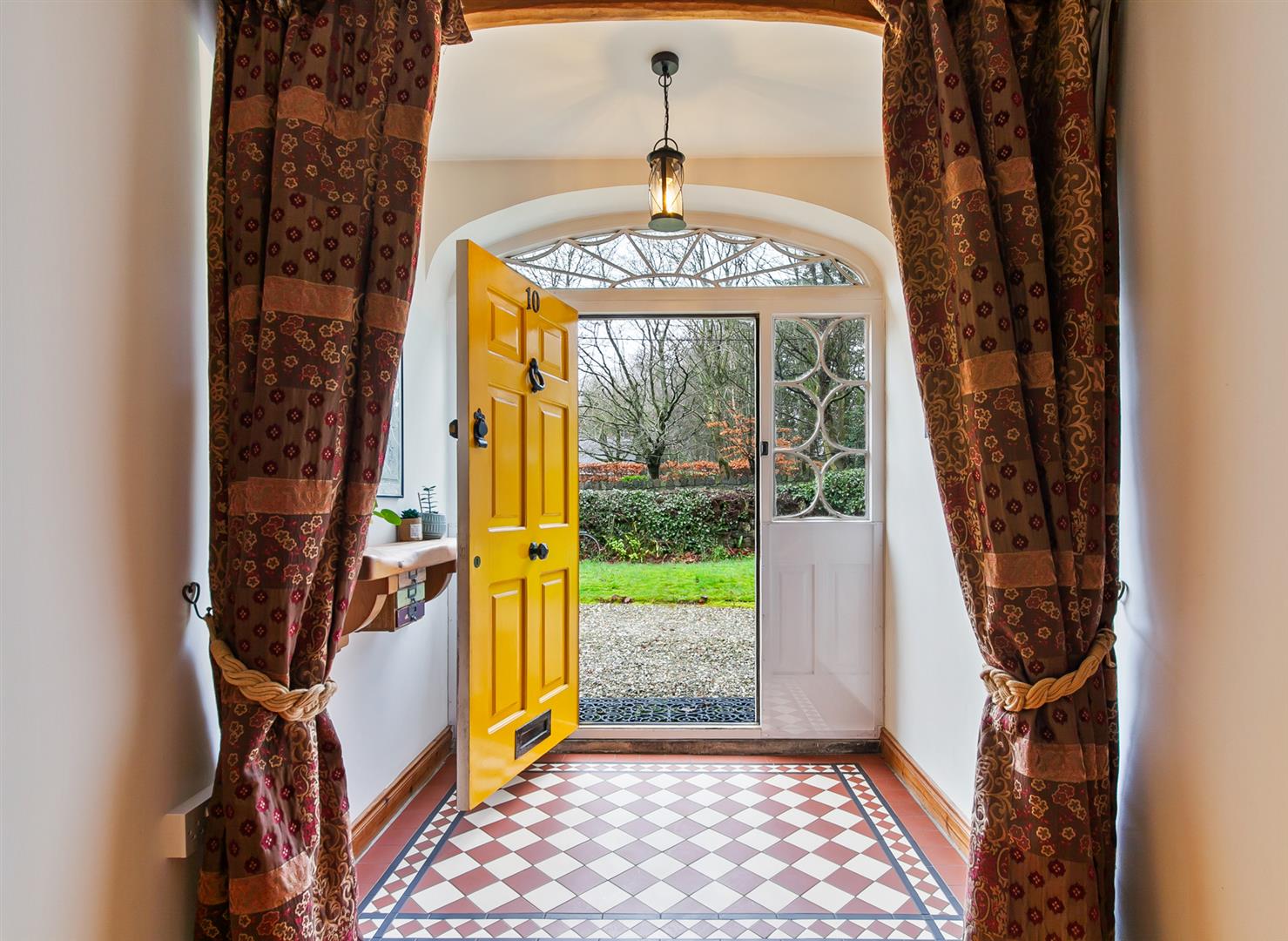 Hardwood front door with matching glass panelled side screens and fanlight over. Tiled floor to entrance porch area, with solid timber flooring thereafter. Stairwell to first floor. Access to under stairs store and built in heated dog bed.