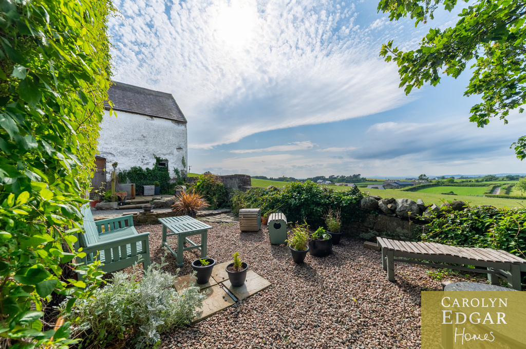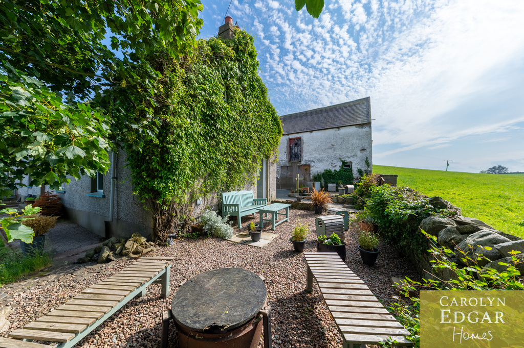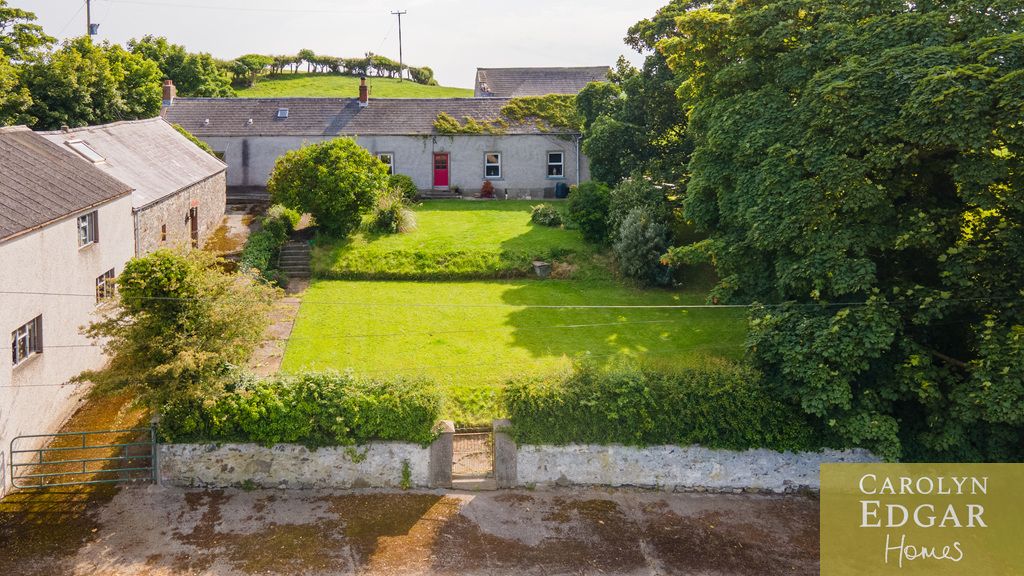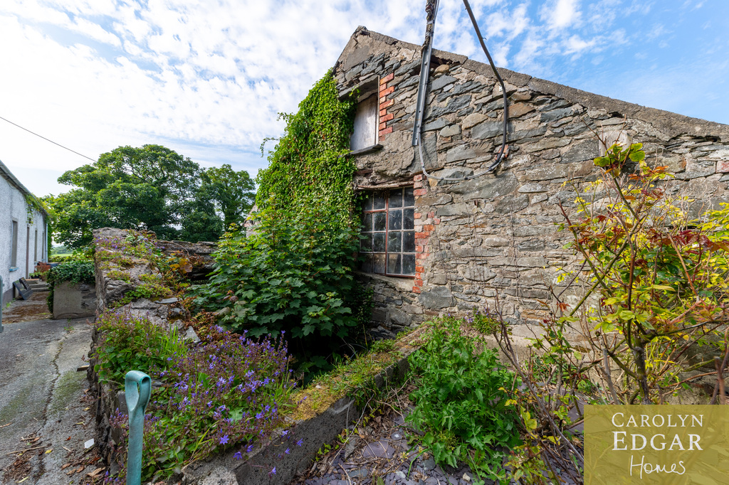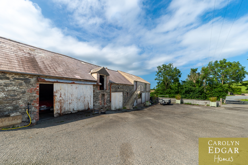 This is a rare opportunity to acquire a unique character filled historic original stone built Long Low Farmhouse with extensive commercial potential. The long low farmhouse embodies local vernacular architecture with practical layout and connection to rural landscape. Situated in the lee of a drumlin, amidst rolling hills, this property dates back to 1780 and is surrounded by mature trees and gardens. This site has three separate entrances with an array of outbuildings, to include four former stables, seven bay hay shed, large garage, as well as an original two storey workshop, currently operational and focused as a small manufacturing and industrial polishing business on the ground floor and hay loft and storage facility on second floor. Set on just under an acre of land with extensive views of the surrounding countryside but also panoramic views of Strangford Lough and Belfast and Castlereagh Hills. An abundance of outdoor space including a generous grassed area, once tended for productive vegetables now a recreational outdoor space. An additional unique outside feature is an 18th century natural stone lined well, with water access, a charming reminder of traditional lifeways.