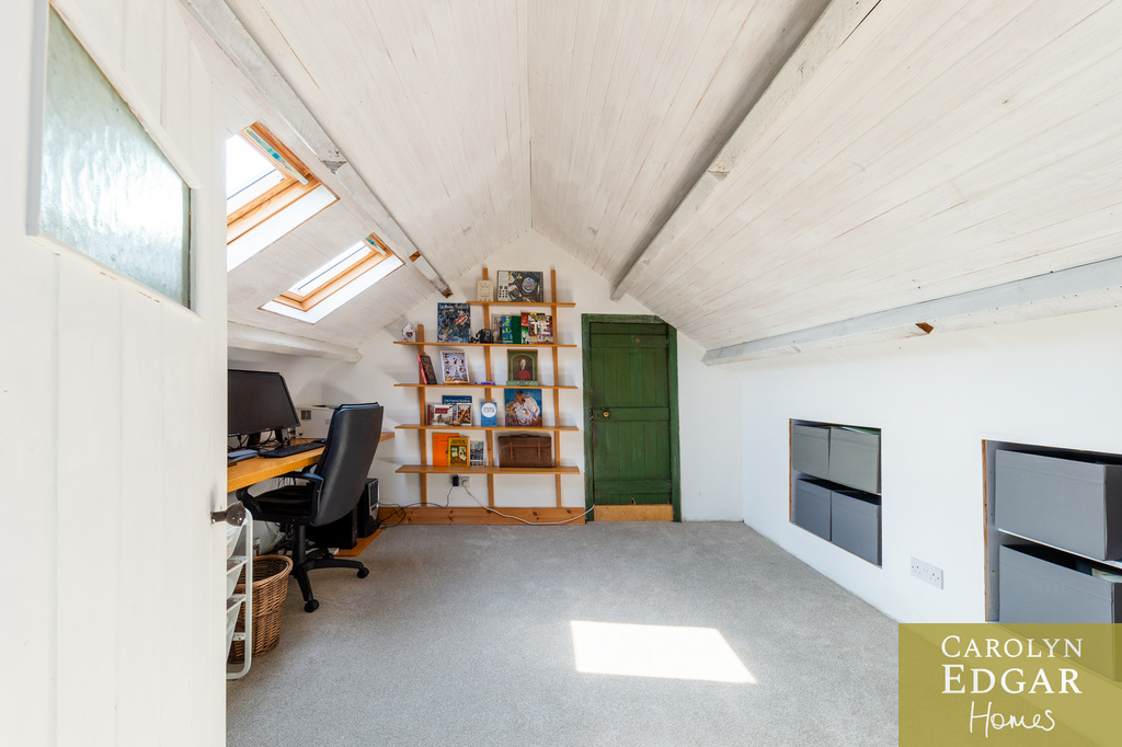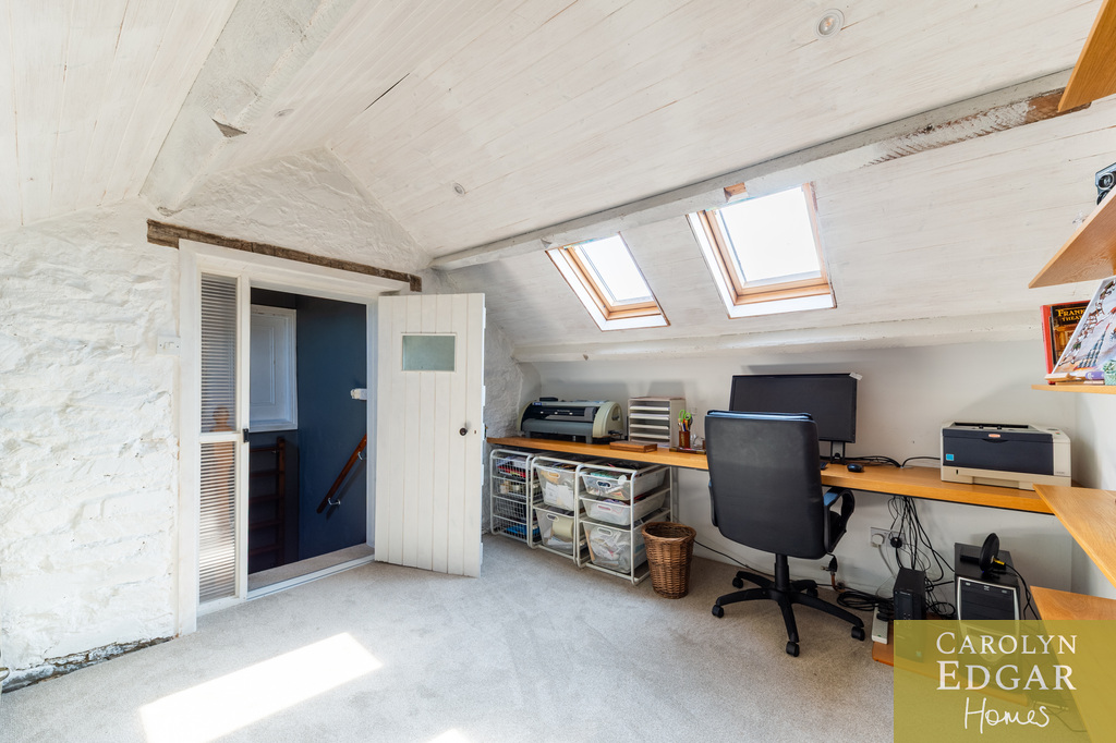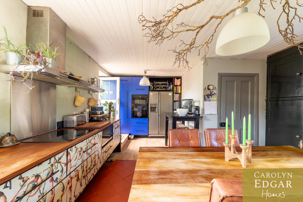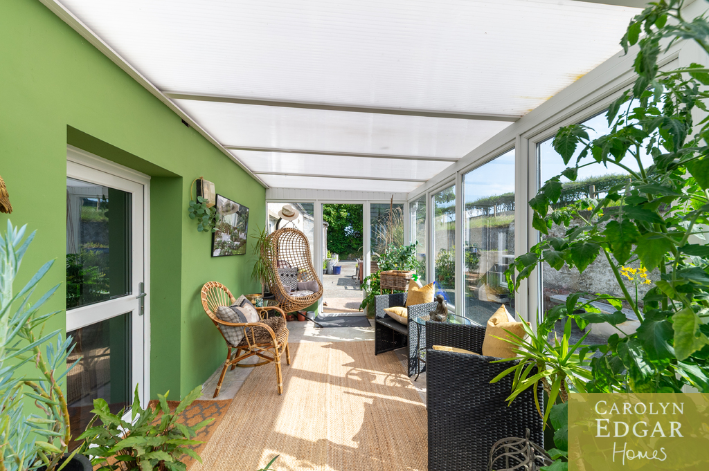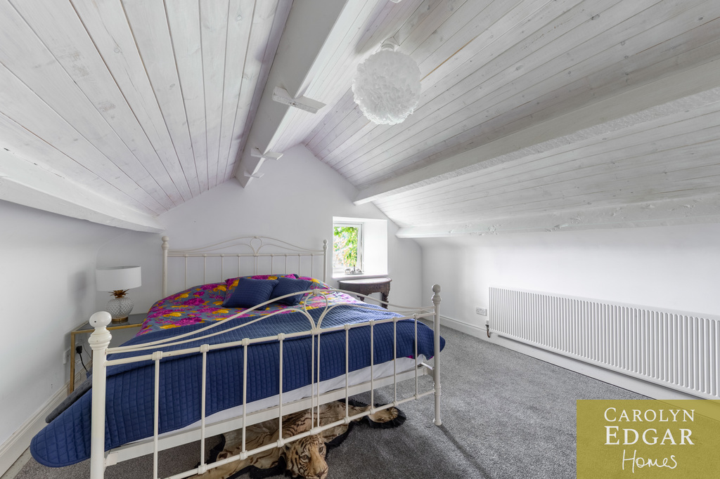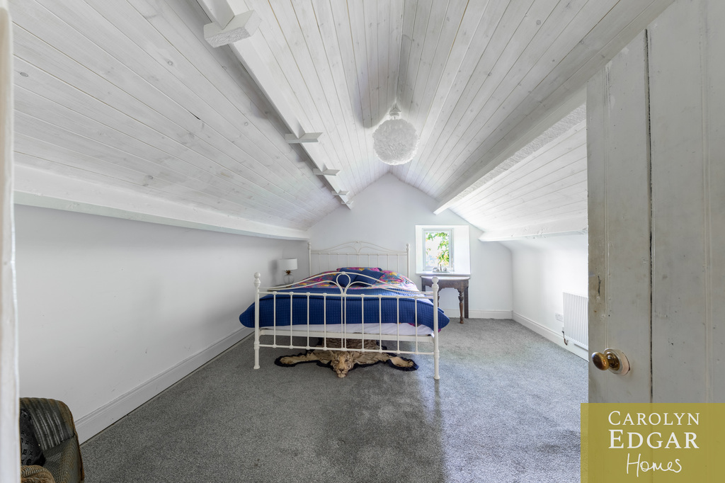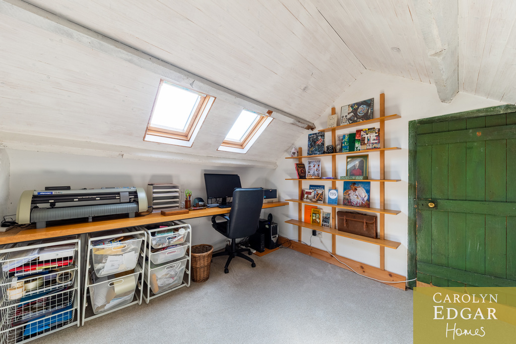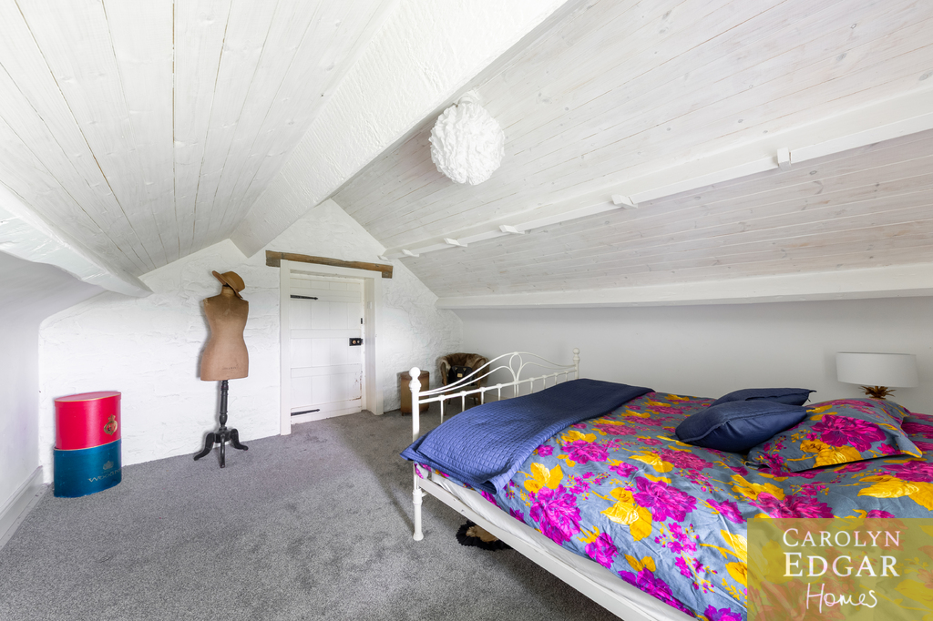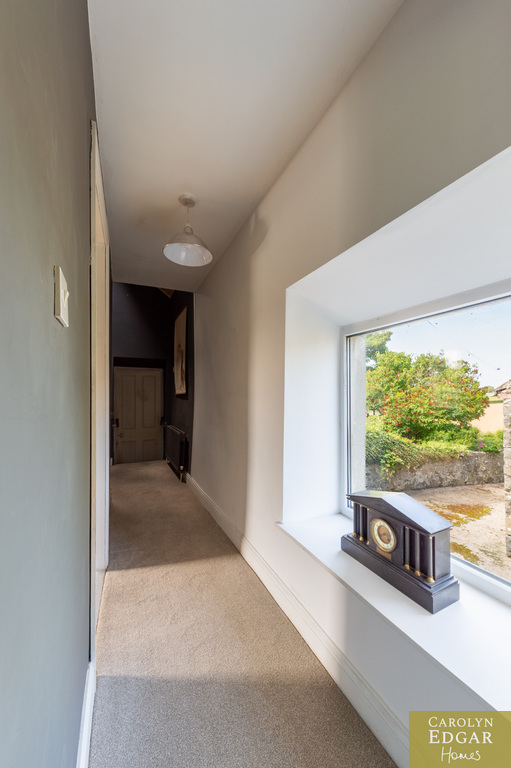 Internally, the property comprises of an inviting entrance hallway, spacious dual aspect drawing room with views of surrounding countryside, feature open fire place and access to sun terrace with firepit and raised barbeque area, all again with stunning views and sensational sunsets. The delightful and quirky kitchen is equipped with numerous built in appliances, an oil fired Esse Range adds warmth and functionality, bespoke hand made cupboards, floating units, Belfast sink, original terracotta tiles complete that extra character and charm. The sun room adjacent to the kitchen overlooks the rear gardens and also off the kitchen is a cosy family room providing a snug retreat. The ground floor also includes a family bathroom and two well appointed double bedrooms with a storage loft above. The first level features a third bedroom with breathtaking country views, a storage room that could be converted into a dressing room or bathroom, and a large office space.