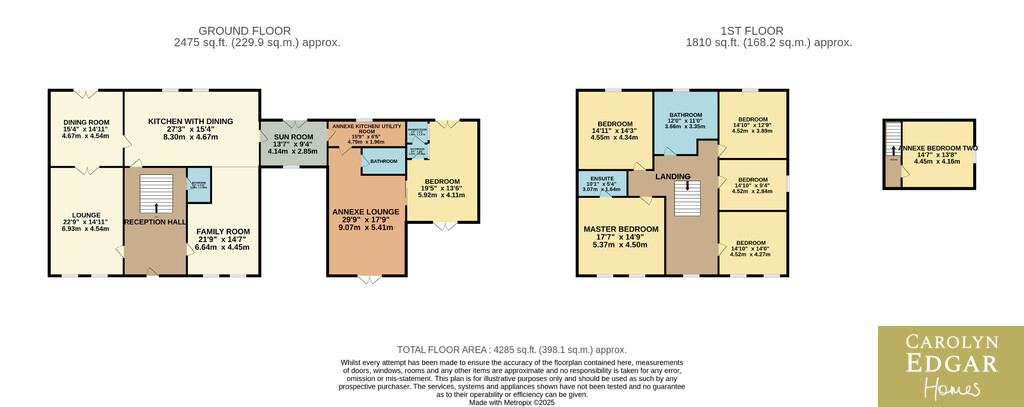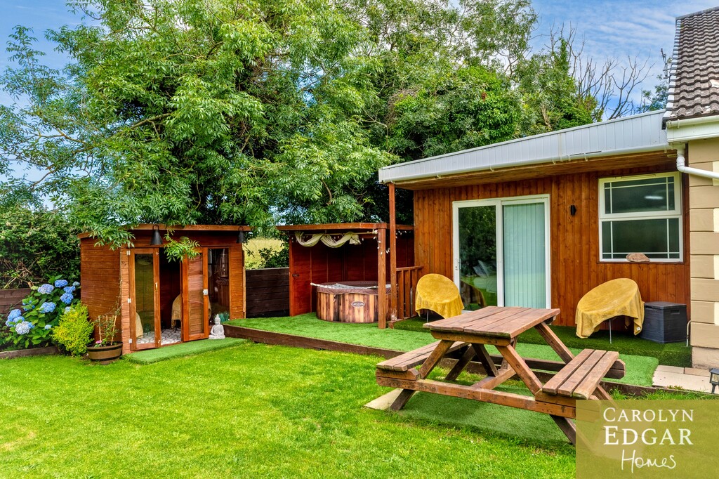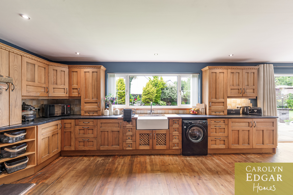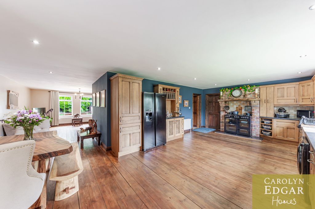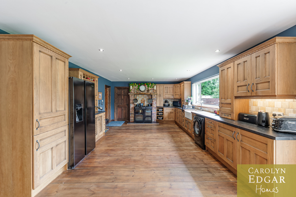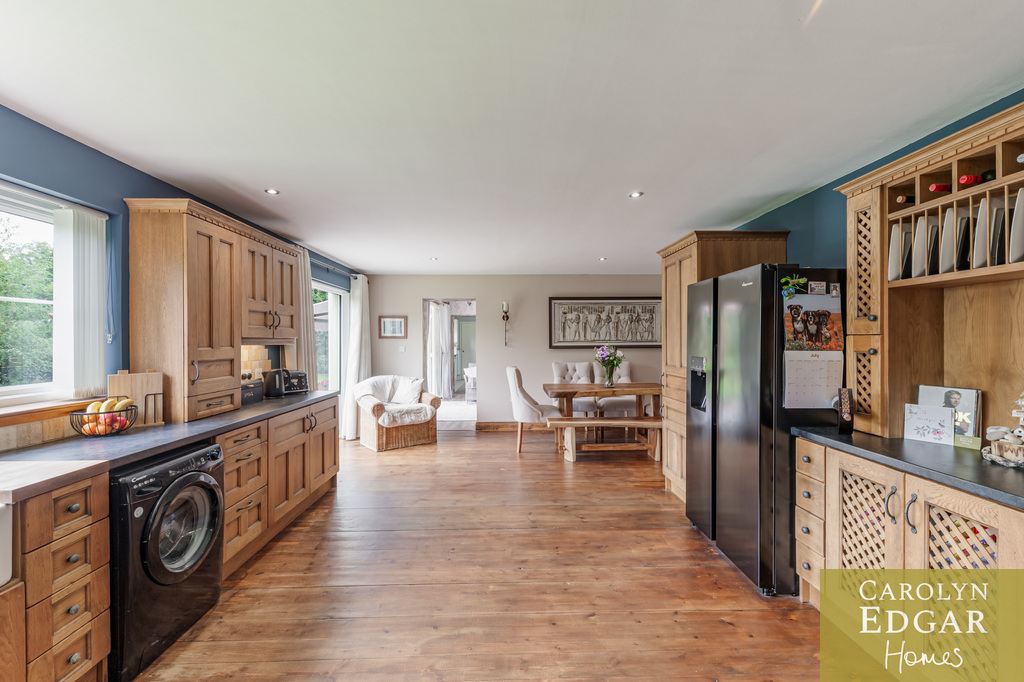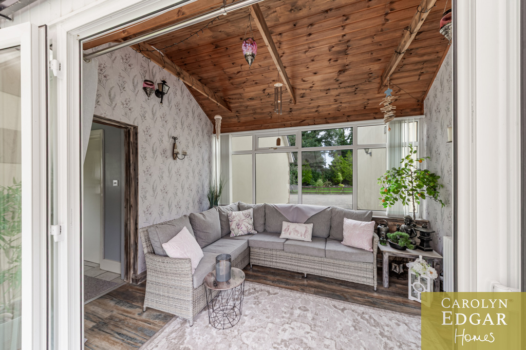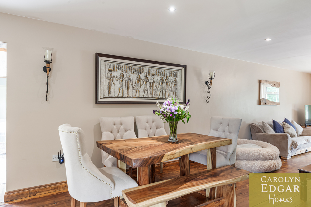 Internally the main property comprises of impressive reception hallway with feature solid oak staircase, extensive lounge with open fireplace and double doors leading to the formal dining room with French doors overlooking and leading out to the perfectly kept sunny rear gardens. The luxury fitted solid wood country style kitchen comes with an extensive range of built in units and appliances, family dining area which leads onto a large living room and wonderful sun room with feature beam vaulted ceilings and double doors flooding the room with natural light, a perfect spot to sit and watch over the gardens no matter the weather. Additionally there is a downstairs bathroom and fully equipped utility room. Upstairs has five immaculately presented large double bedrooms, master suite with ensuite shower room and bespoke family bathroom with feature freestanding roll top bath and separate shower. The annexe was previously run as a profitable Air BnB business, with many quirky features and has its own entrance and car parking facilities. Internally it provides spacious and modern accommodation with large open plan lounge with double doors and feature wood burning stove, access to utility and kitchen, two bathrooms on the ground floor including ensuite shower room, double bedroom and with another beautifully presented bedroom on the first floor. To the front of the property is a large gated driveway providing ample car parking for several cars, horse boxes etc and to the rear are substantial and perfectly maintained wraparound sunny south facing gardens with paved patio area, summer house and covered hot tub area what a way to spend an evening!