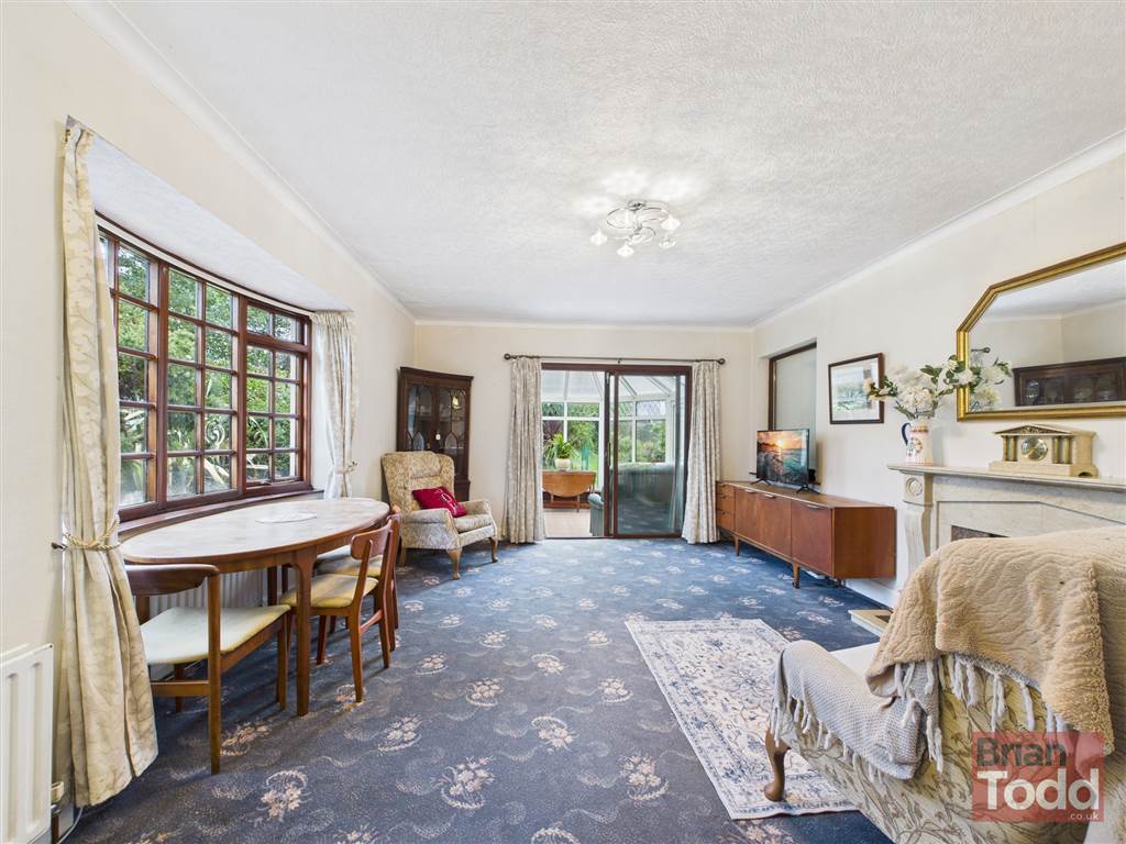 The accommodation is both generous and thoughtfully arranged, offering an inviting open hallway and dining area, an elegant lounge, lightfilled conservatory, and a fitted kitchen complete with integrated appliances. The property further benefits from two well appointed bedrooms, including a principal bedroom with ensuite shower room, and a bathroom featuring a distinctive coloured suite.