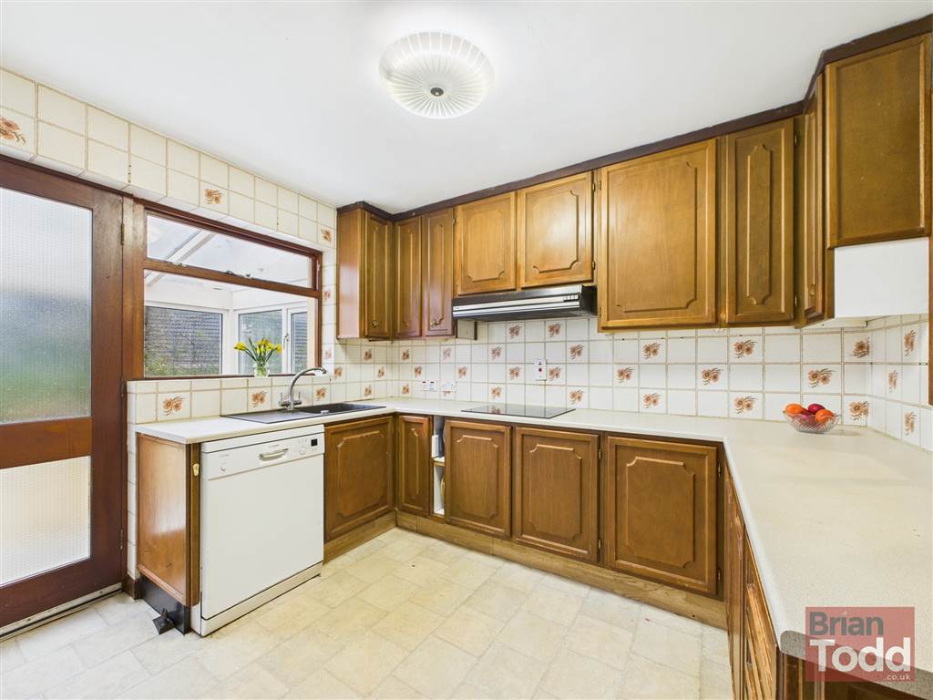 Range of fitted upper and lower level units. Integrated ceramic hob, oven and extractror fan. Single drainer sink unit. Plumbed for dishwasher. Wall and floor tiling.