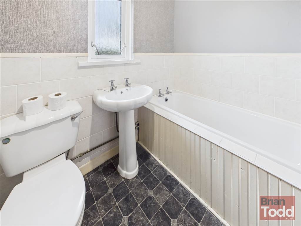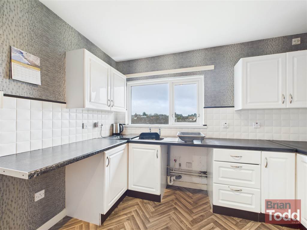 Good range of fitted upper and lower level units. Stainless steel sink unit. Plumbed for automatic washing machine. Part wall tiling.