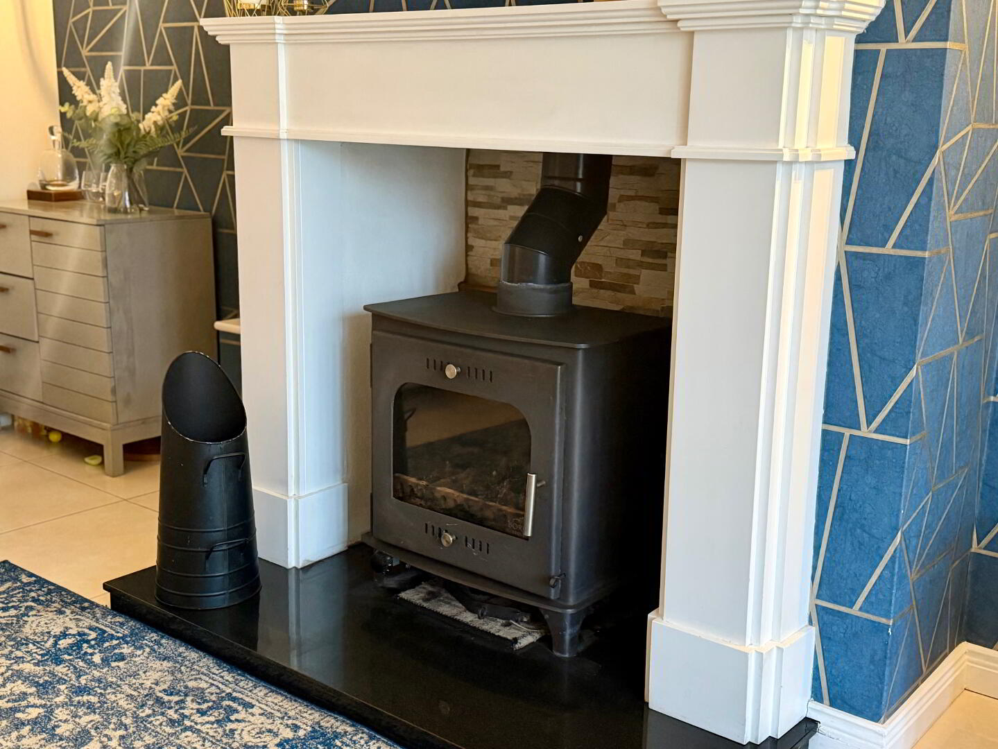 LARGE RECEPTION ROOM WITH SOLID FUEL STOVE AND BACK BOILER