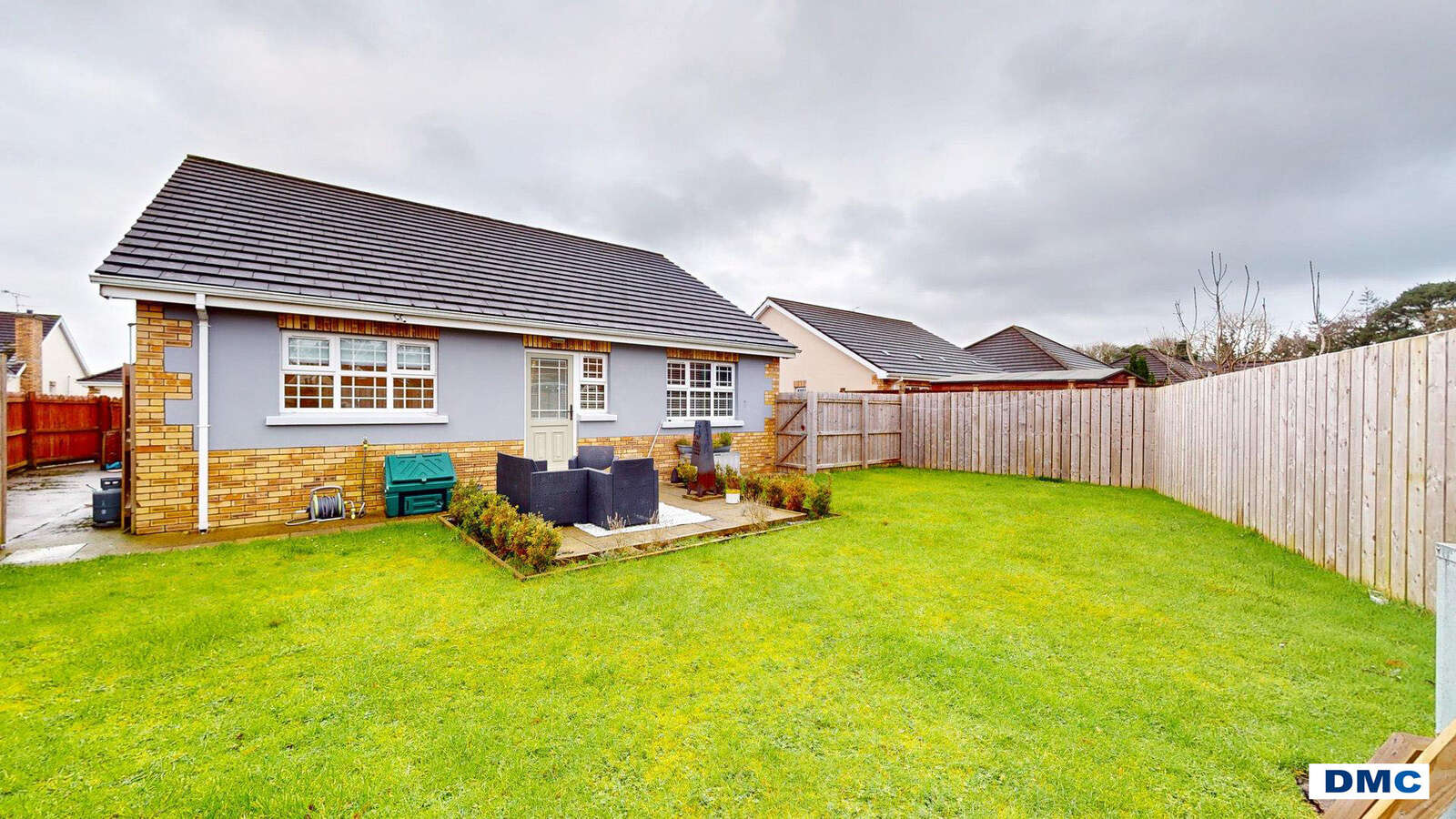Excellent corner site with small garden to front of dwelling laid out in lawns and shrubs. Tarmac driveway with good parking space to side of property leading to garage space at rear. Rear garden laid out in lawns enclosed by timber fence and gates. Paved patio area. Concrete dog compound/Utility space to side of dwelling. Outside lights and water tap. Boiler House. PVC oil tank.