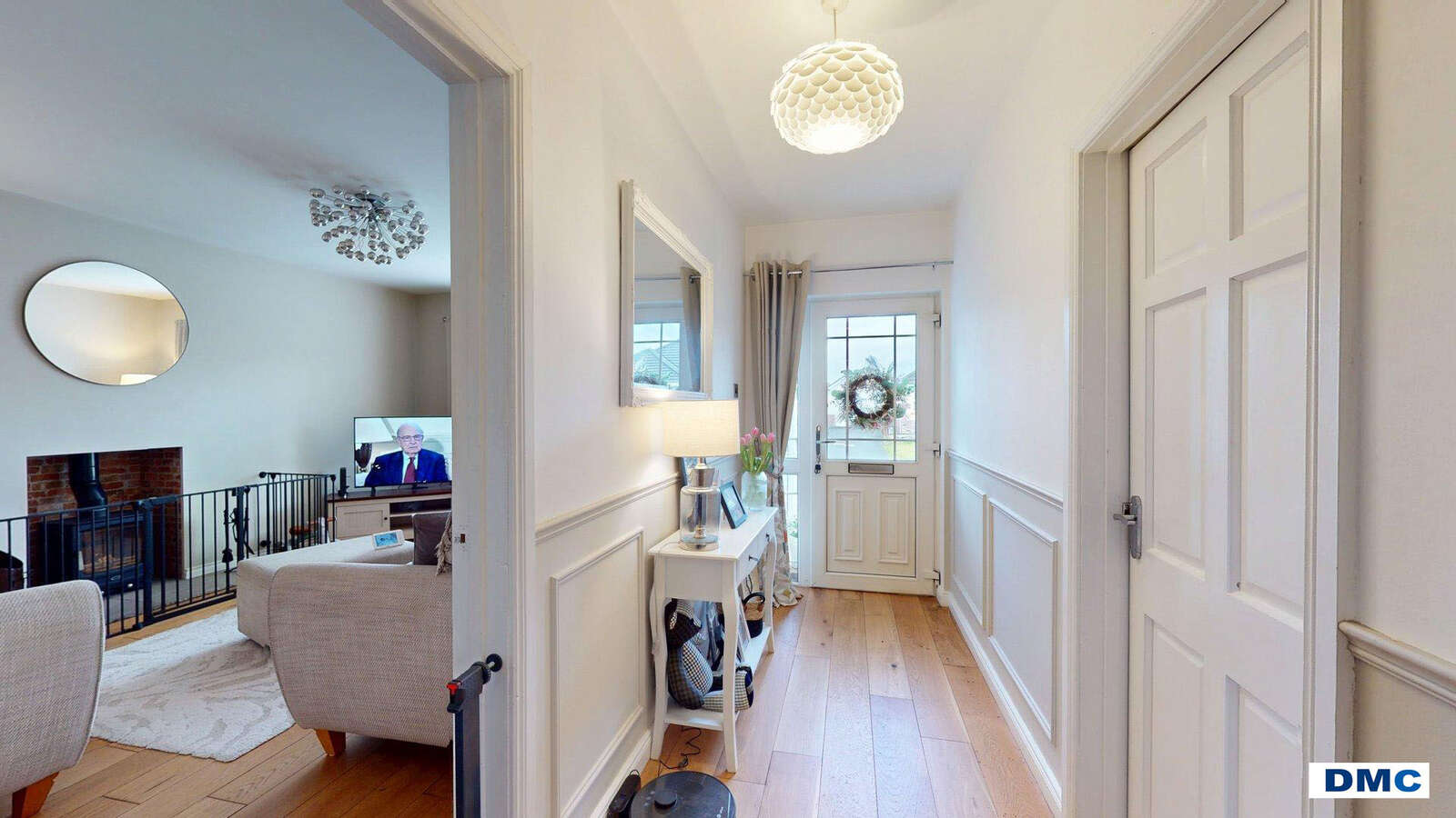 23'8 x 4'4 uPVC front door with double glazed centre light and side screen. Solid Natural Oak floor. Feature wood panelled walls. Cloakroom. Shelved Hotpress.