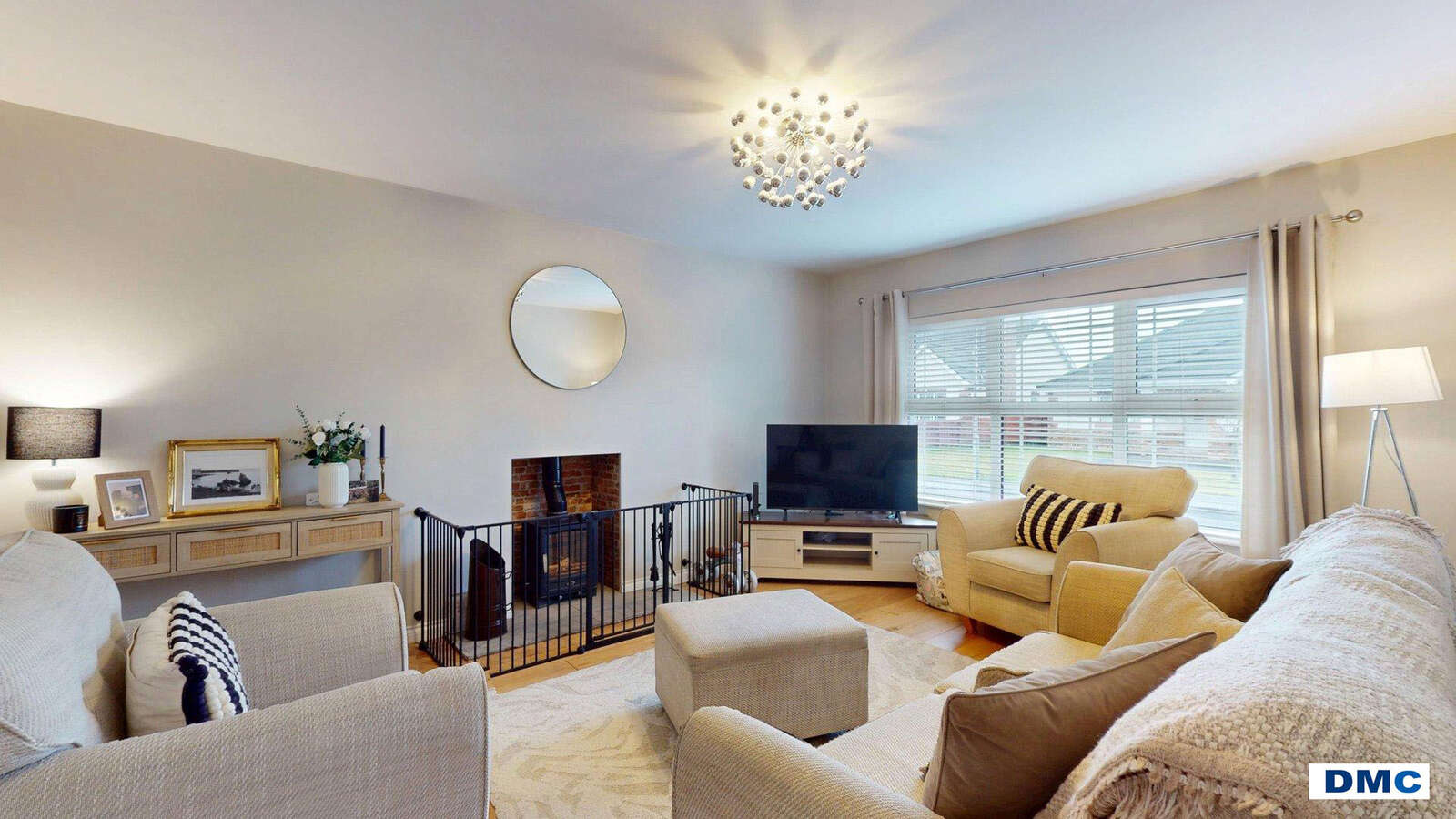 16'2 x 12'6 feature hole-in-wall fireplace housing cast iron multifuel Stove. Solid Natural Oak floor.