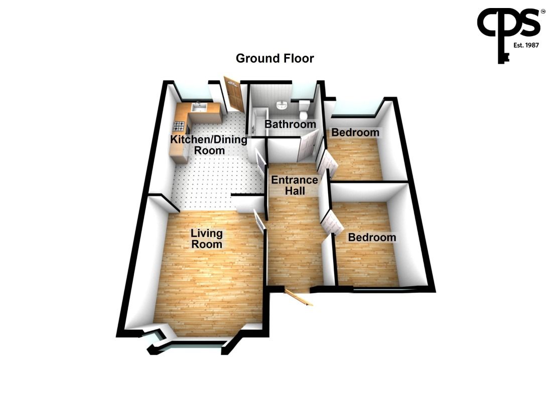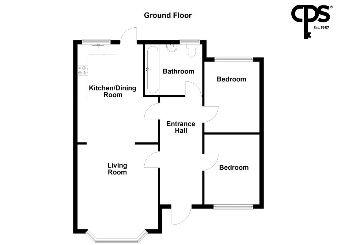 Internally, the bungalow comprises a bright and spacious living room leading through to an open-plan kitchen and dining area, two well-proportioned bedrooms, and a family bathroom fitted with a modern three-piece suite.