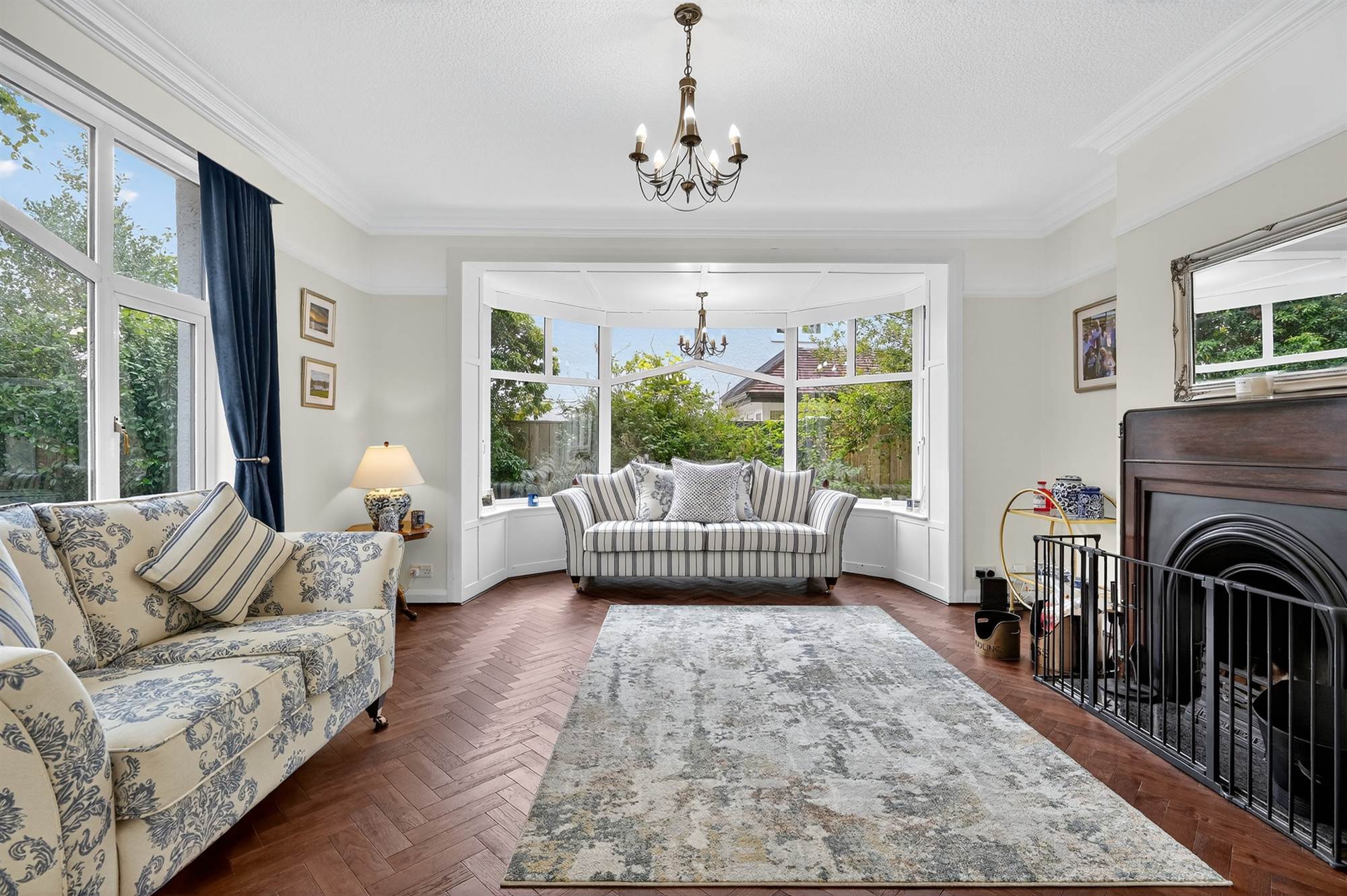 Formal Lounge with Fireplace, Parquat Floor and Side Bay
