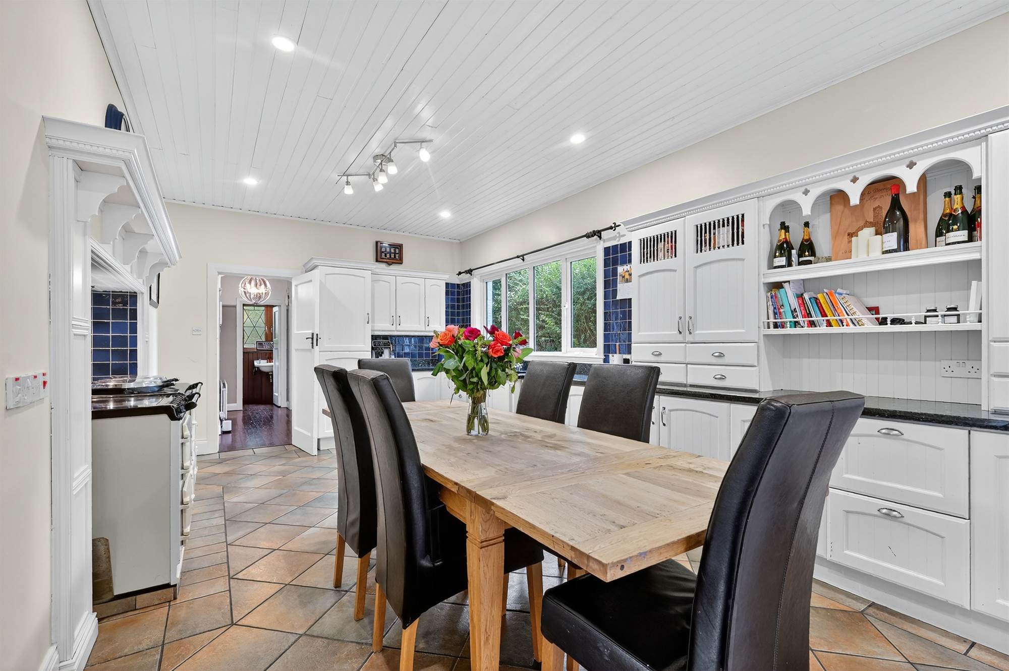 Extensive range of high and low level Highland painted pine units with granite work surfaces, sink unit, oil fired four oven Aga (2 oil fired, 2 electric with grill) and double hotplate, integrated dishwasher and fridge freezer,painted pine tongue and groove panelled ceiling with spotlights, part tiled walls, ceramic tiled floor. Open plan to . . .