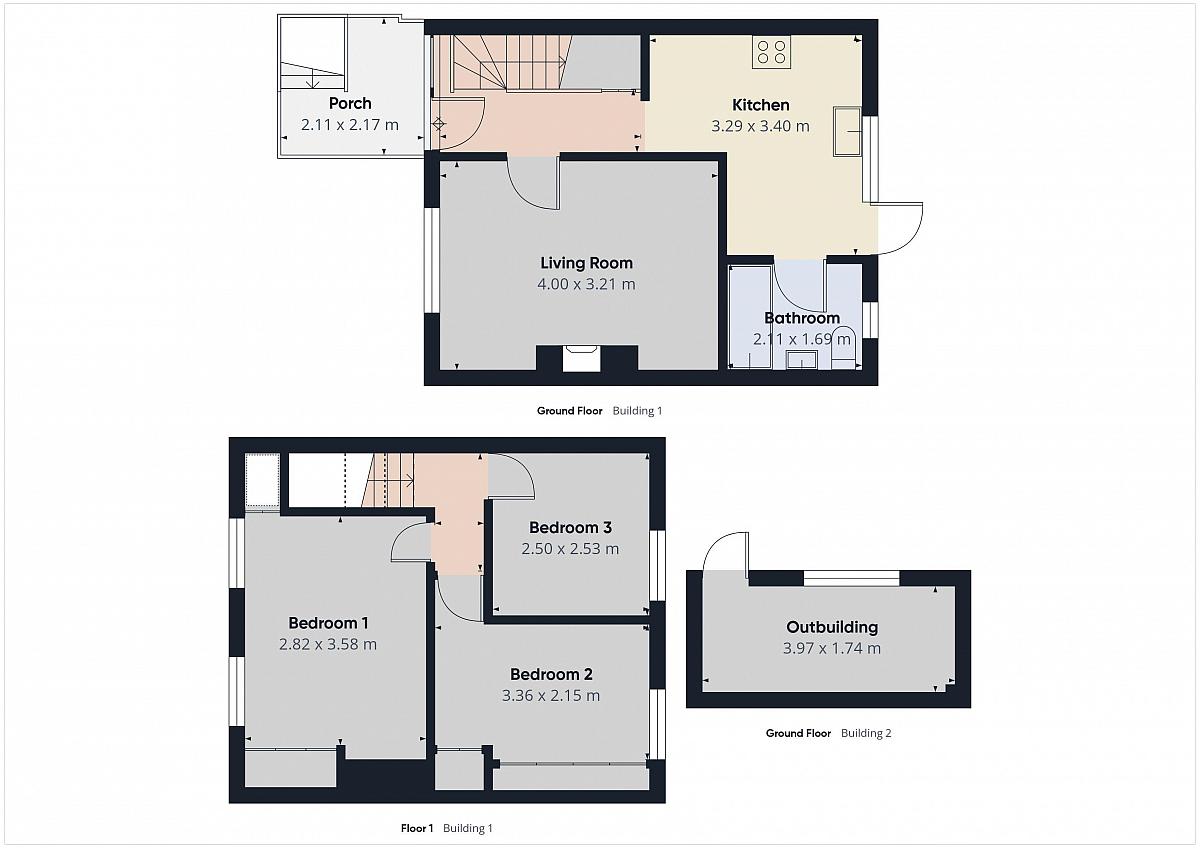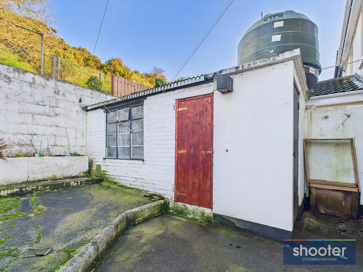 Rear yard with side entrance, boiler house and outbuilding (3.97m x 1.74m). Outside light and water tap.