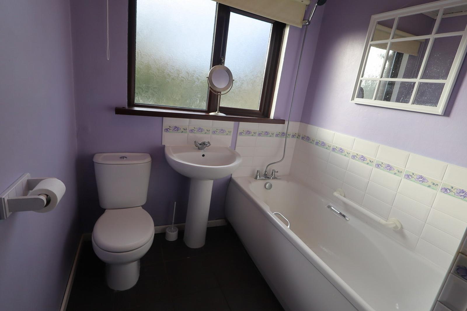 BATHROOM uPVC bath unit, thermostatic shower, wall tiling, tiled flooring, low flush W/C, pedestal wash hand basin, panelled ceiling