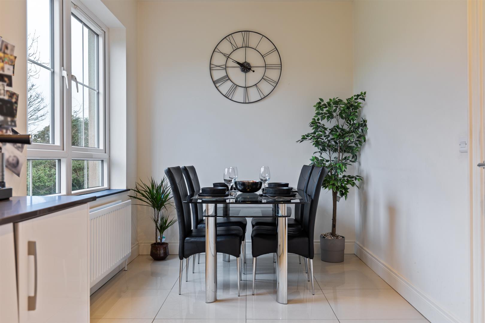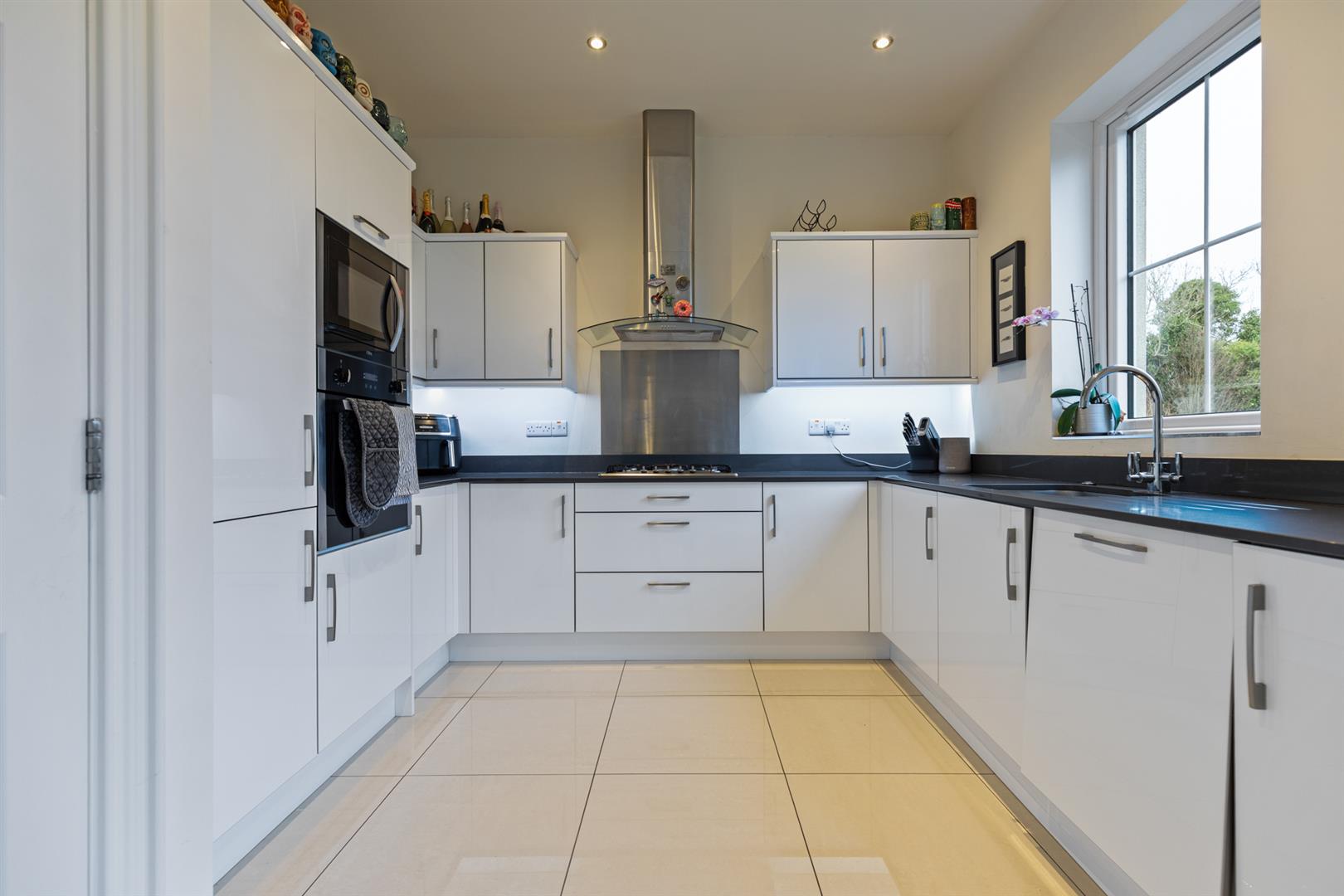Modern kitchen with Quartz work surfaces, integrated appliances, and separate utility room