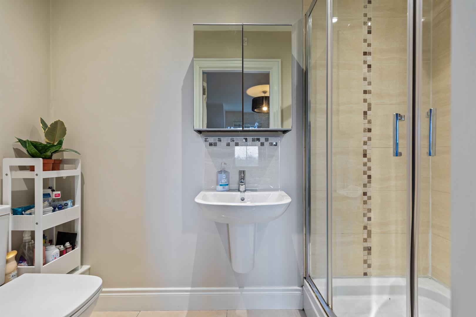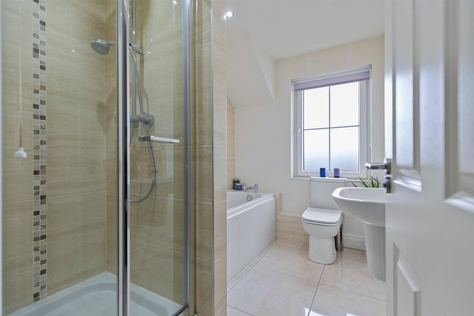 Family bathroom with panelled bath and shower, plus a convenient first-floor WC