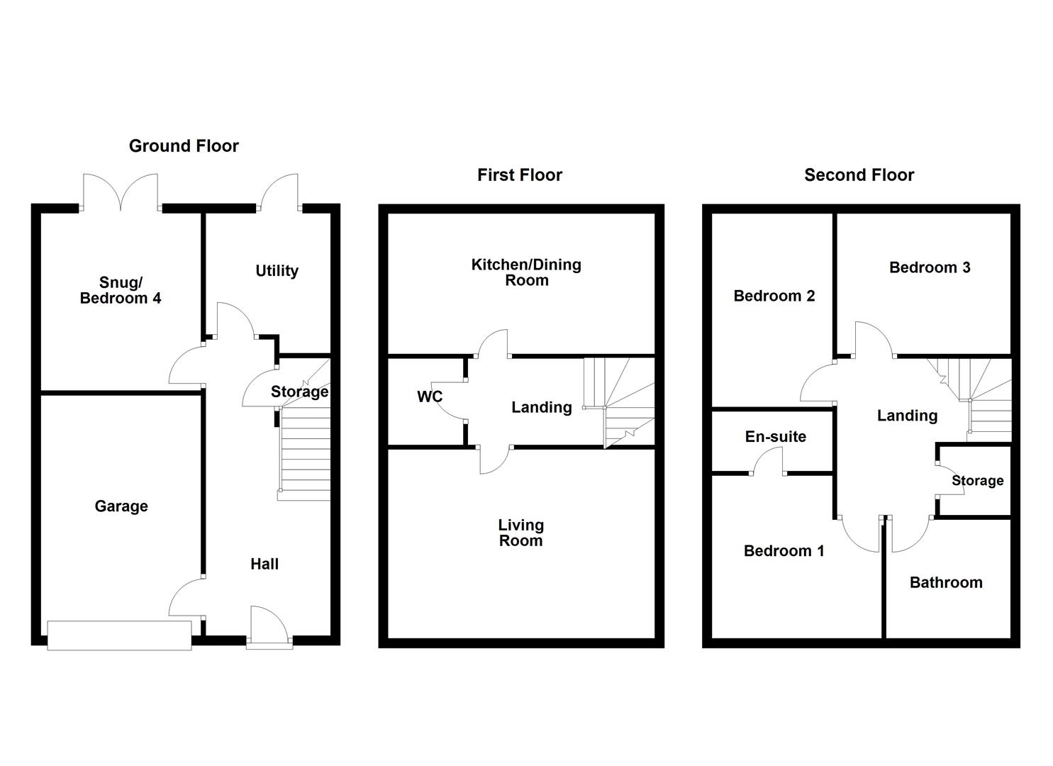 On the second floor, the master bedroom includes an ensuite shower room, with two further bedrooms and a family bathroom completing the accommodation. The landing provides additional storage and access to the roof space.