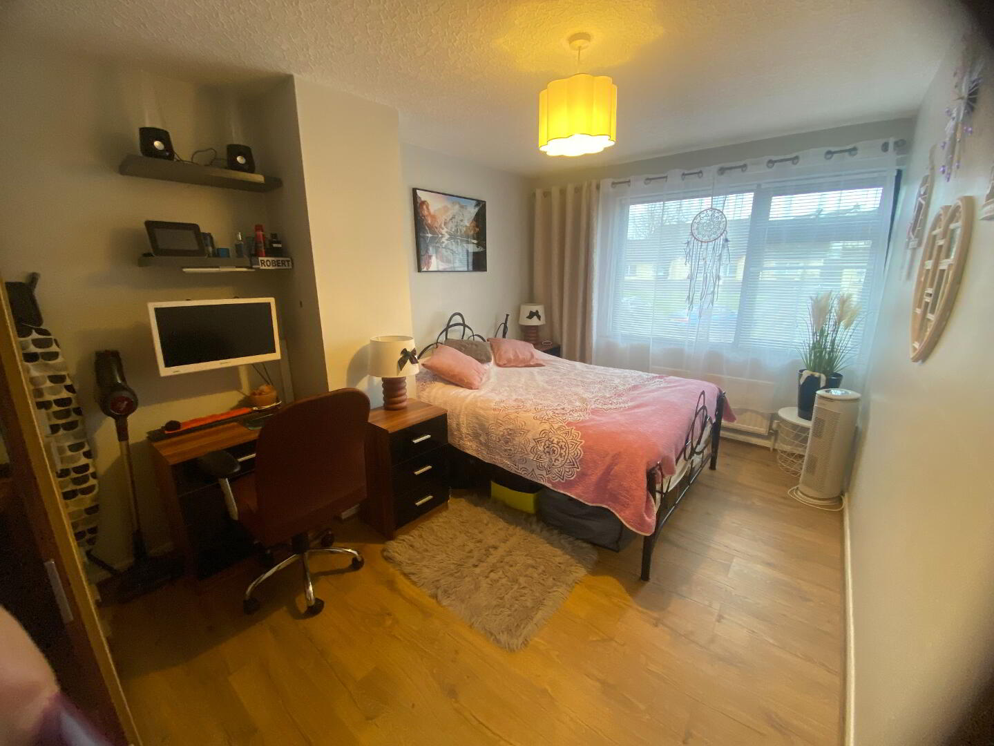 2.88m x 3.10m (9' 5" x 10' 2"furthest points) Wood laminate flooring, single panel radiator, built in robe, access to loft via pull down ladder.