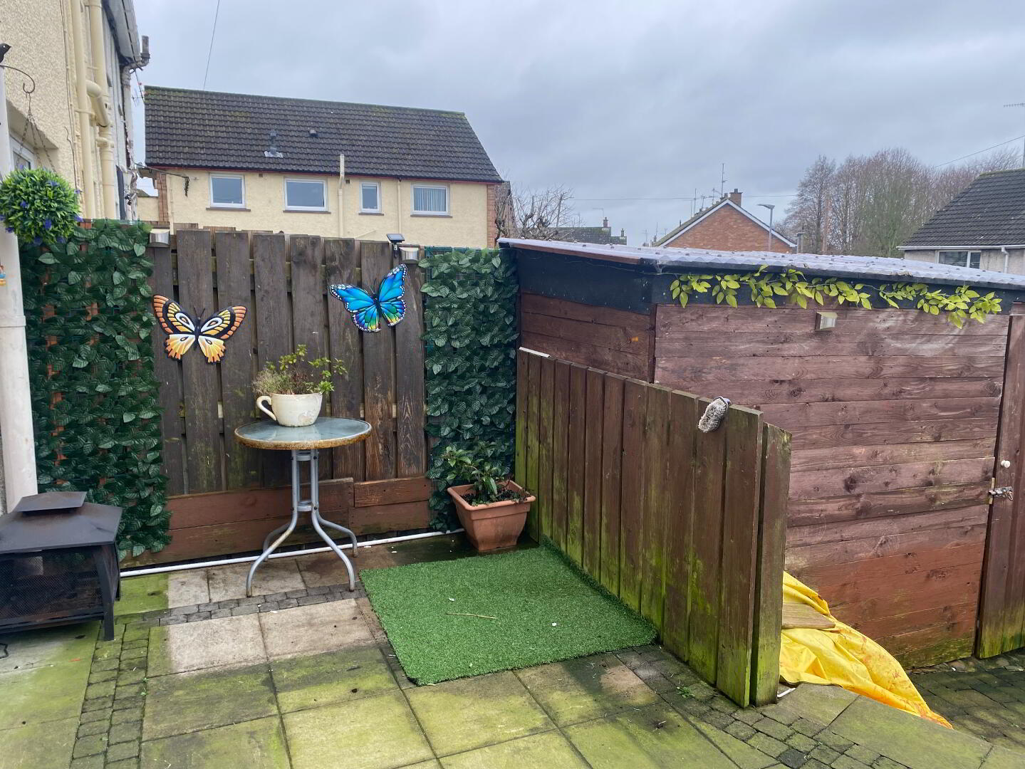 Rear garden with raised paved patio area, outside light & tap, steps down to yet another patio area with brick built shed with boiler housing. Large garden shed, enclosed area housing PVC oil tank, gateway to rear, all fully enclosed.