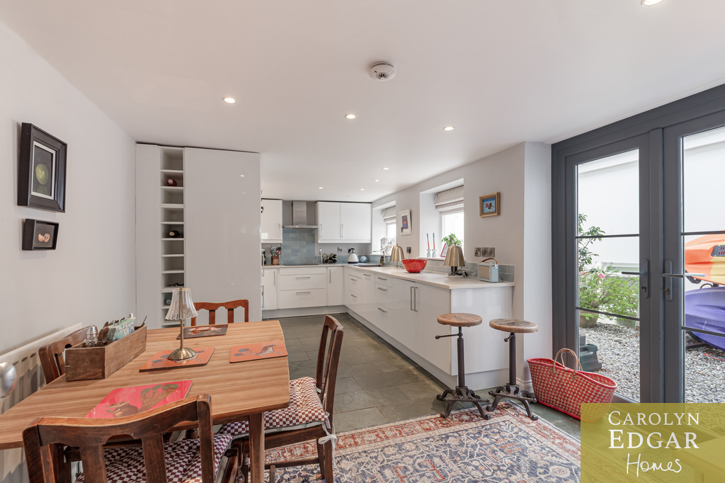 Modern Fitted Kitchen with Casual Dining and Access to Courtyard