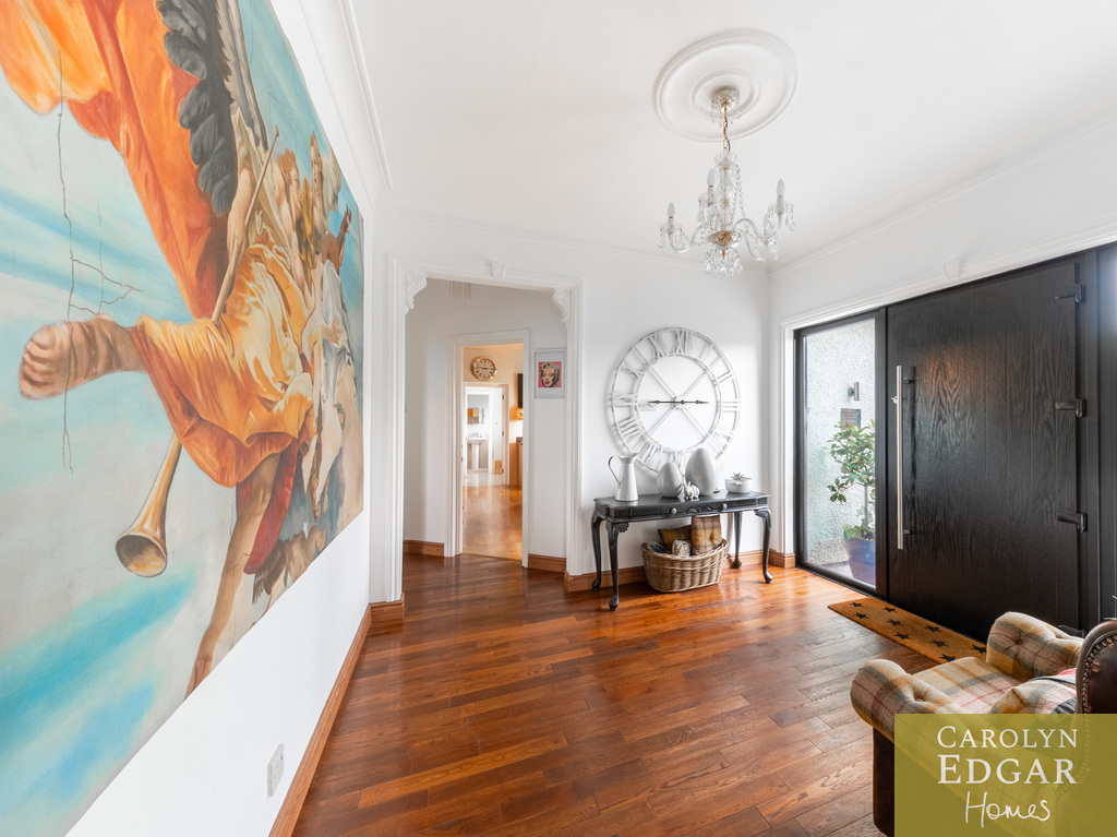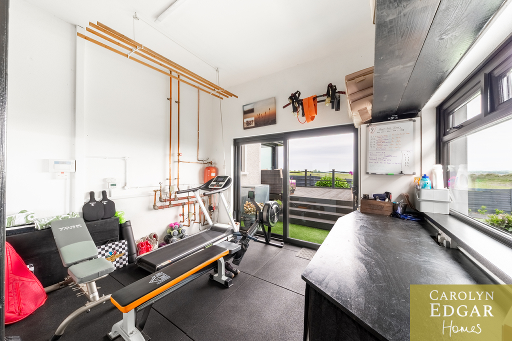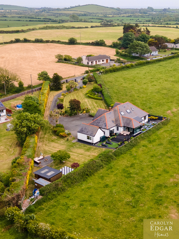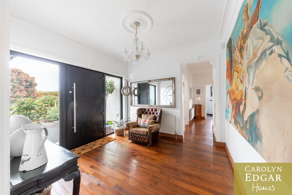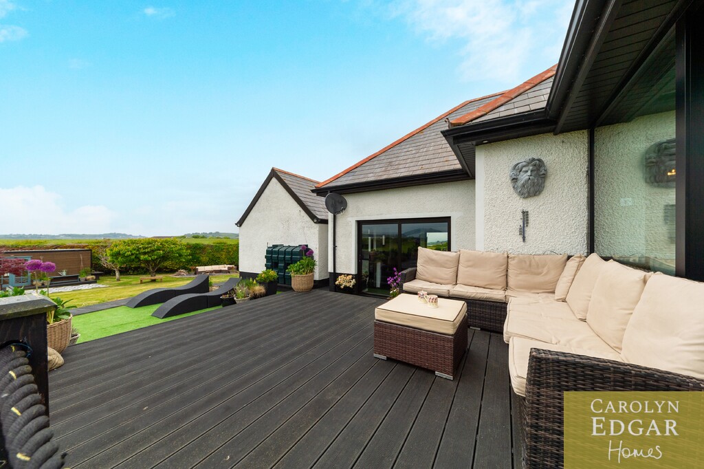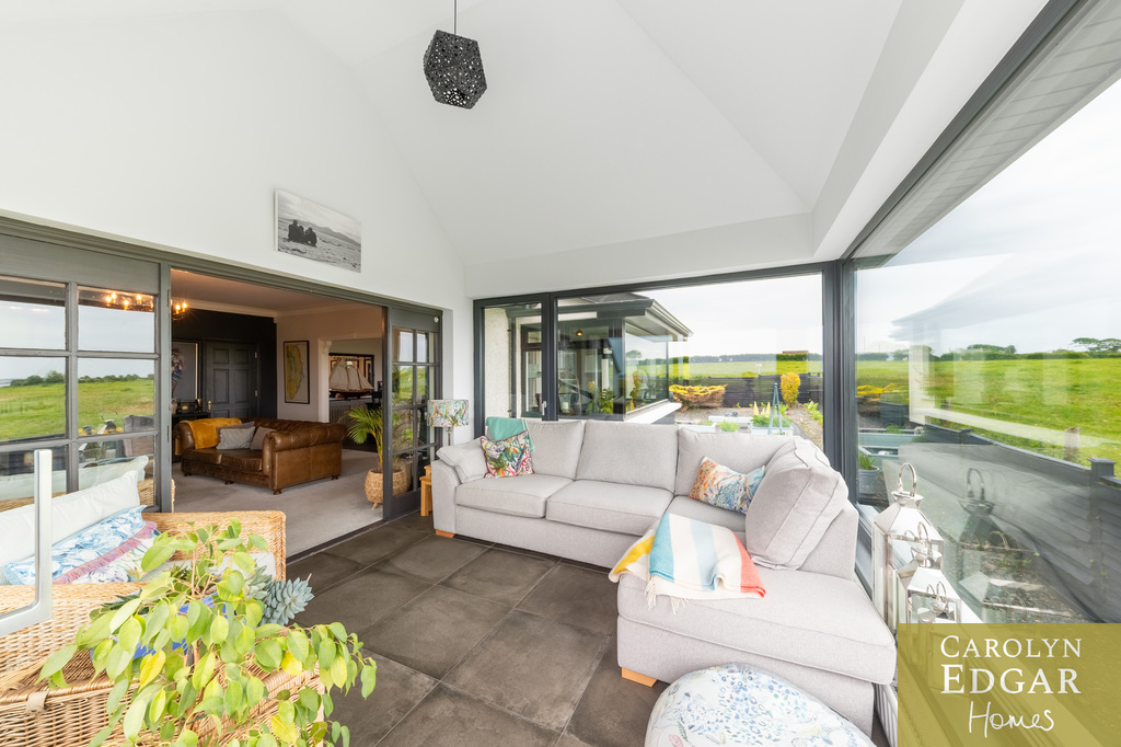 Approached by sweeping driveway with a fabulous lough view back drop this remarkable four bedroom home is set on a magnificent site with stunning panoramic views. The property has been meticulously updated by the current owners and is immaculately presented throughout with a floor space of over 2750 sq ft offering a wealth of spacious and stylish living accommodation whatever your family needs. Set in beautifully maintained gardens of circa one acre the property has magnificent all-encompassing views over The Narrows, Strangford Lough and the Mournes with an abundance of outdoors space too that will suit any family's needs on a most prime and sought after site. Internally the property comprises of a large welcoming reception hallway, extensive lounge with feature fireplace, leading to formal dining room open to piano room and leading out to the stunning sun room with outstanding views over the Lough and beyond and sliding doors out the raised composite decked sun terrace, you will not get a better view! The bespoke open plan solid oak kitchen comes with a wide range of built in units and appliances and quirky extra features with cosy wood burning stove and window seat overlooking the stunning front garden and separate baking room. Additionally, there are three bedrooms on the ground floor, one with ensuite bathroom with corner bath, separate modern downstairs shower room and for those more active a converted gym with glass sliding doors overlooking the lough. The beautifully presented master suite is on the first floor with dressing room and built in robe as well as modern family bathroom. Outside the property is set on a well maintained mature site of one acre with large driveway providing ample car parking for several cars, boat, or horse boxes and faultless wrap around gardens. To the rear of the property is decked sun terrace area leading from the sunroom, a perfect spot for a barbecue, entertaining or just sitting and taking in the views, and extensive gardens laid in lawn with mature shrubs, fruit trees and Summer house . Only a short drive will bring Portaferry with its marina, restaurants, shops, and schools there are plenty of opportunities to enjoy the great outdoors, from sailing on the Strangford Lough, cycling, fishing, walking and with the bustling market town of Newtownards only 20 minutes way, this really does present a unique opportunity for those looking for a change of pace and the lifestyle that comes with it.