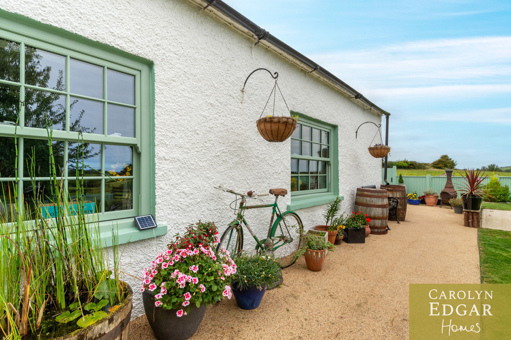 Nestled down a quiet laneway in picture perfect cottage style gardens this setting is perfect those looking for a relaxed country life with countless opportunities to enjoy the great outdoors, from sailing on the Strangford Lough, cycling, fishing and stunning walks. Set on a wonderful two-acre plot, with a one-acre paddock, the property features beautifully maintained gardens with many enchanting areas, including a decked sun terrace that overlooks a delightful wildlife pond, enclosed courtyard with fireplace and pizza oven, and a large, raised viewing platform that offers breathtaking panoramic views.